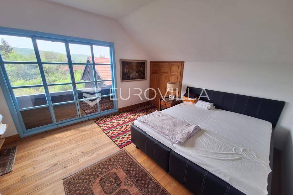 Barilovići, Perjasica, 2 drvene kuće 350 m2 s pomoćnom zgradom na mirnoj lokaciji. Nalazi se na ograđenoj parceli od 3913 m2.Kuće 260 m2 spojene su ograđenom terasom. Prva kuća se sastoji od hodnika, dnevnog boravka, kupaonice i 2 spavaće sobe s kupaonicom. Druga kuća se sastoji od 2 dnevna boravka, kuhinje, kupaonice 2 WC-a i hodnika.Kuće su drvene, krovni pokrov crijep, centralno grijanje na drva, podne obloge keramika i seljački pod, drvena stolarija.Uz kuće se nalazi i gospodarska zgrada 75 m2 i nadstrešnica s pečenjarom 15 m2.Perjasica je malo, ruralno naselje u Karlovačkoj županiji, u sastavu općine Barilović, nedaleko od rijeke Korane. Nalazi se u mirnom, šumovitom i brežuljkastom području uz rijeku Koranu. Okružena je prirodom – šumama, livadama i obradivim površinama. Rijeka Korana daje cijelom kraju poseban ugođaj, a područje je poznato po čistoj prirodi i tišini.Udaljenost od Karlovca 25 km, od Zagreba 80 km.Za sva ostala pitanja stojim na raspolaganju.... Više na eurovilla.hr, ID: 185793