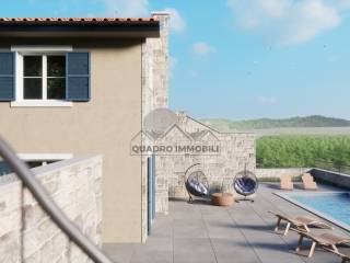 We offer a beautiful Istrian house among vineyards. The house has a size of 180m2 and stands on a plot of 670m2. The first floor includes a large spacious living room, a kitchen with a dining room, a toilet and a storage room. On the second floor there are 3 bedrooms, each with its own bathroom, 2 bedrooms have an exit to the terrace from where we have a beautiful view of the Istrian vineyards. In the garden there is a swimming pool, a sunbathing area and a well-equipped summer kitchen. The house has two private parking spaces. The house is of high-quality construction, the entire house has underfloor heating via a heat pump, cooling fans are provided, PVC windows... The house is fenced and offers a lot of privacy, it is located in a very well-kept, peaceful environment.