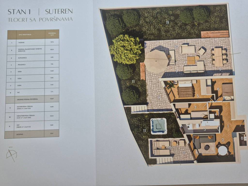 Split | Luksuzna stambena zgrada suvremenog dizajnaProjekt u Splitu predstavlja ekskluzivnu novogradnju smještenu na jednoj od najatraktivnijih mikrolokacija . Riječ je o dvije luksuzne stambene zgrade s ukupno 56 stambenih jedinica, projektiranoj i građenoj prema najvišim standardima kvalitete, s posebnim naglaskom na moderan, funkcionalan i suvremen način života. Planirano useljenje predviđeno je u drugoj polovici 2027. godine.Z2 S1- trosoban stan smješten na etaži prizemlja, zatvorene površine 72,67m², kojem dodatnu vrijednost daje natkrivena terasa ukupne površine 39,96 m², nenatkrivrna terasa 41,37 m2, te vrt od 128,50 m2. Funkcionalan raspored prostora obuhvaća hodnik, tri spavaće sobe, jednu kupaonicu,jedan WC, praonicu, te dnevni boravak s blagovaonicom i kuhinjom otvorenog tlocrta s izlazom na terasu.Ukupna obračunska površina stana iznosi 115,80 m².Obavezna kupnja jednog garažnog ili vanjskog parkirnog mjesta.Stan će biti opremljen vrhunskom opremom koja uključuje podno grijanje cijelog stana, klimatizaciju u svim prostorijama, ALU stolariju, protuprovalna ulazna vrata, parket prve klase te visokokvalitetnu keramiku i sanitarnu opremu.Nekretnina se nalazi svega 230 metara od mora, u blizini svih potrebnih sadržaja ( trgovina, restorana, privatne međunaradone škole, nove šetnice I plaža ), što ovu lokaciju čini idealnim izborom za ugodan i kvalitetan život ili investiciju.Za sve dodatne informacije stojimo na raspolaganju.... Više na eurovilla.hr, ID: 504037