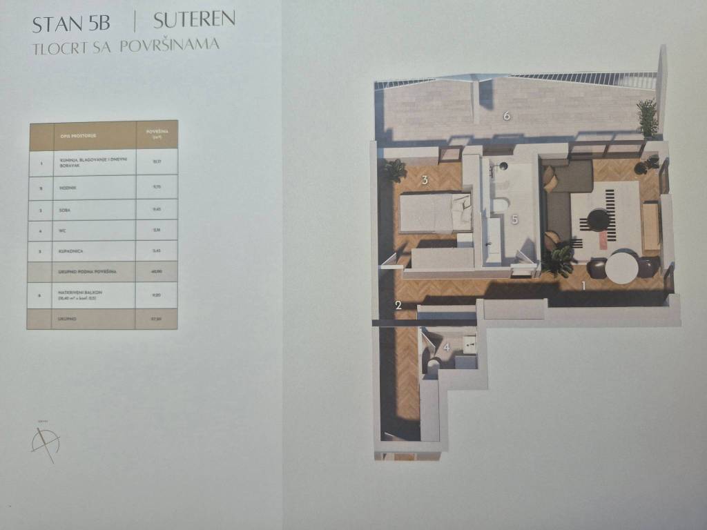 Split | Luksuzna stambena zgrada suvremenog dizajnaProjekt u Splitu predstavlja ekskluzivnu novogradnju smještenu na jednoj od najatraktivnijih mikrolokacija . Riječ je o dvije luksuzne stambene zgrade s ukupno 56 stambenih jedinica, projektiranoj i građenoj prema najvišim standardima kvalitete, s posebnim naglaskom na moderan, funkcionalan i suvremen način života. Planirano useljenje predviđeno je u drugoj polovici 2027. godine.Z2 S5B- Jednosoban stan smješten na etaži visokog prizemlja, zatvorene površine 48,00 m², kojem dodatnu vrijednost daje natkriveni balkon ukupne površine 18,40 m². Funkcionalan raspored prostora obuhvaća hodnik, jednu spavaću sobu, jedna kupaonicu te dnevni boravak s blagovaonicom i kuhinjom otvorenog tlocrta s izlazom na balkon.Ukupna obračunska površina stana iznosi 57,20 m².Obavezna kupnja jednog garažnog ili vanjskog parkirnog mjesta.Stan će biti opremljen vrhunskom opremom koja uključuje podno grijanje cijelog stana, klimatizaciju u svim prostorijama, ALU stolariju, protuprovalna ulazna vrata, parket prve klase te visokokvalitetnu keramiku i sanitarnu opremu.Nekretnina se nalazi svega 230 metara od mora, u blizini svih potrebnih sadržaja ( trgovina, restorana, privatne međunaradone škole, nove šetnice I plaža ), što ovu lokaciju čini idealnim izborom za ugodan i kvalitetan život ili investiciju.Za sve dodatne informacije stojimo na raspolaganju.... Više na eurovilla.hr, ID: 211416