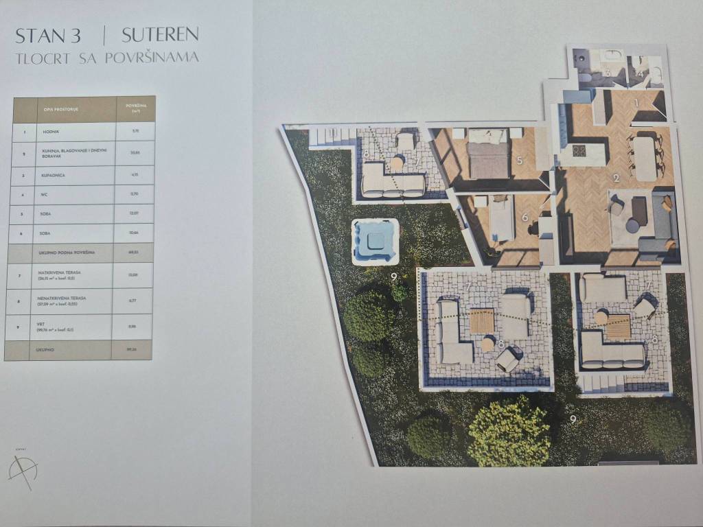 Split | Luksuzna stambena zgrada suvremenog dizajnaProjekt u Splitu predstavlja ekskluzivnu novogradnju smještenu na jednoj od najatraktivnijih mikrolokacija . Riječ je o dvije luksuzne stambene zgrade s ukupno 56 stambenih jedinica, projektiranoj i građenoj prema najvišim standardima kvalitete, s posebnim naglaskom na moderan, funkcionalan i suvremen način života. Planirano useljenje predviđeno je u drugoj polovici 2027. godine.Z2 S3- dvosoban stan smješten na etaži prizemlja, zatvorene površine 69,53 m², kojem dodatnu vrijednost daje natkriveni terasa ukupne površine 26,15 m², nenatkrivena terasa 27.09 m2 i vrt 99,76 m2. Funkcionalan raspored prostora obuhvaća hodnik, tri spavaće sobe, jednu kupaonicu,jedan WC, te dnevni boravak s blagovaonicom i kuhinjom otvorenog tlocrta s izlazom na terasu.Ukupna obračunska površina stana iznosi 99,52 m².Obavezna kupnja jednog garažnog ili vanjskog parkirnog mjesta.Stan će biti opremljen vrhunskom opremom koja uključuje podno grijanje cijelog stana, klimatizaciju u svim prostorijama, ALU stolariju, protuprovalna ulazna vrata, parket prve klase te visokokvalitetnu keramiku i sanitarnu opremu.Nekretnina se nalazi svega 230 metara od mora, u blizini svih potrebnih sadržaja ( trgovina, restorana, privatne međunaradone škole, nove šetnice I plaža ), što ovu lokaciju čini idealnim izborom za ugodan i kvalitetan život ili investiciju.Za sve dodatne informacije stojimo na raspolaganju.... Više na eurovilla.hr, ID: 289451