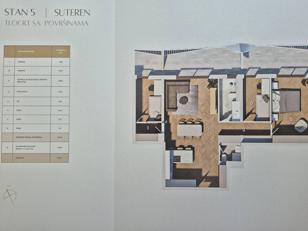 Split | Luksuzna stambena zgrada suvremenog dizajnaProjekt u Splitu predstavlja ekskluzivnu novogradnju smještenu na jednoj od najatraktivnijih mikrolokacija . Riječ je o dvije luksuzne stambene zgrade s ukupno 56 stambenih jedinica, projektiranoj i građenoj prema najvišim standardima kvalitete, s posebnim naglaskom na moderan, funkcionalan i suvremen način života. Planirano useljenje predviđeno je u drugoj polovici 2027. godine.Z2 S5- trosoban stan smješten na etaži prizemlja, zatvorene površine 84.72 m², kojem dodatnu vrijednost daje natkriveni balkon ukupne površine 29,69 m². Funkcionalan raspored prostora obuhvaća hodnik, tri spavaće sobe, jednu kupaonicu,jedan WC, te dnevni boravak s blagovaonicom i kuhinjom otvorenog tlocrta s izlazom na terasu.Ukupna obračunska površina stana iznosi 99,52 m².Obavezna kupnja jednog garažnog ili vanjskog parkirnog mjesta.Stan će biti opremljen vrhunskom opremom koja uključuje podno grijanje cijelog stana, klimatizaciju u svim prostorijama, ALU stolariju, protuprovalna ulazna vrata, parket prve klase te visokokvalitetnu keramiku i sanitarnu opremu.Nekretnina se nalazi svega 230 metara od mora, u blizini svih potrebnih sadržaja ( trgovina, restorana, privatne međunaradone škole, nove šetnice I plaža ), što ovu lokaciju čini idealnim izborom za ugodan i kvalitetan život ili investiciju.Za sve dodatne informacije stojimo na raspolaganju.... Više na eurovilla.hr, ID: 196467