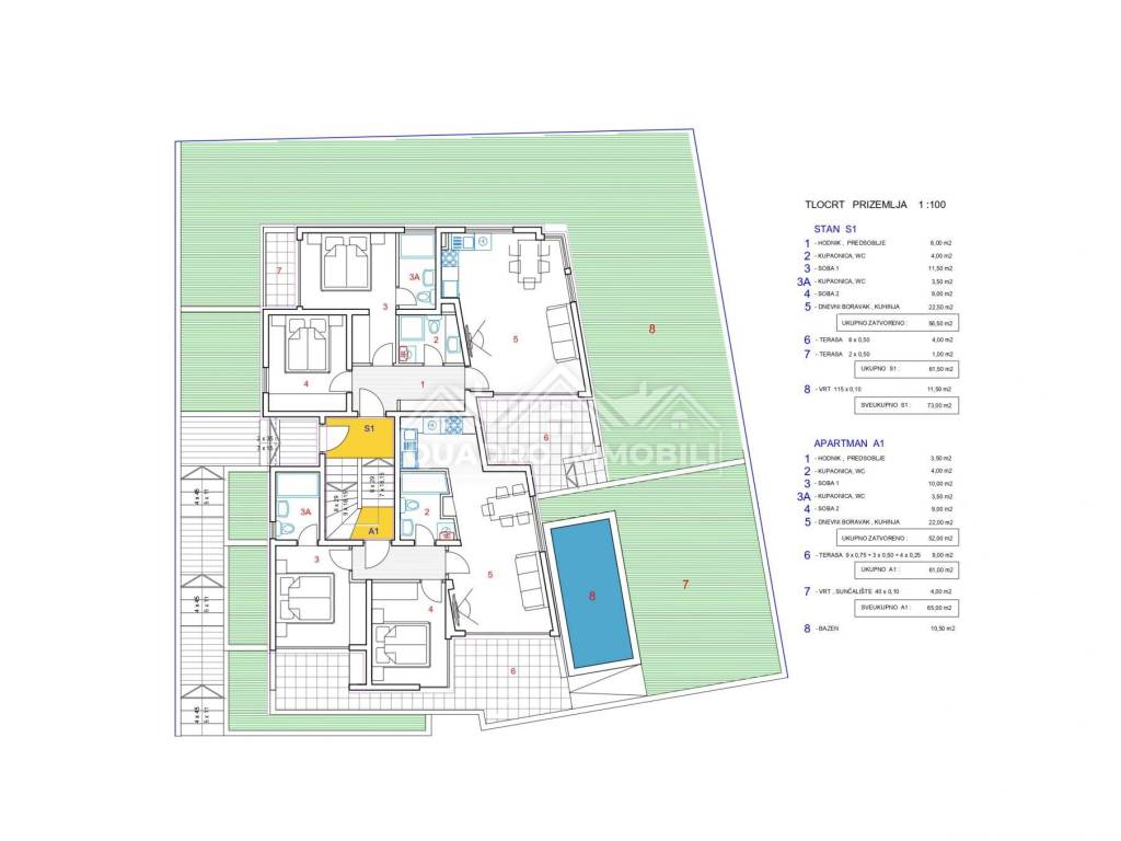 Luxury apartment with pool and sea view for sale. It consists of a hallway, "open space" concept kitchen, dining room and living room, two bedrooms, bathroom, terrace and garden. It has one parking space. The planned start of work is the fifth month of 2024, and the deadline for moving in is 15 June 2025. years.