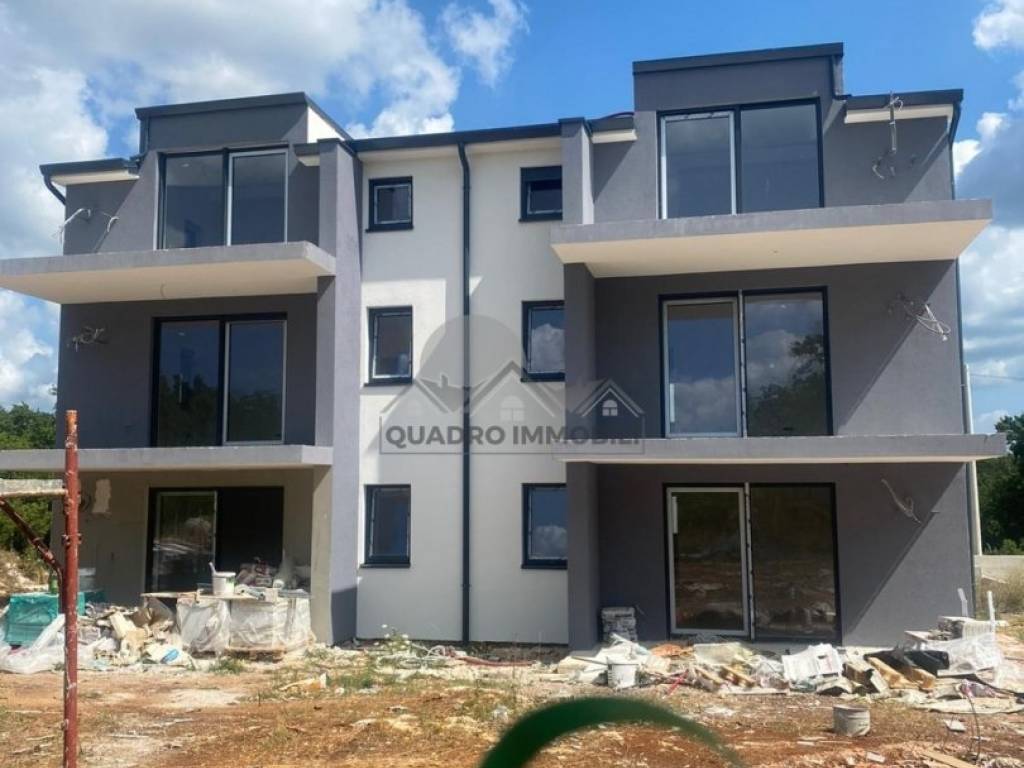 We offer a comfortable apartment in a modern building with 5 apartments. It is located in a quiet location with a view of nature, 10 km from Poreč. The apartment consists of an open concept kitchen, dining and living room, 2 bedrooms, bathroom and terrace. The apartment has one parking space (possible purchase of an additional space). Heating and cooling is via underfloor heating and air conditioning. Opportunity!