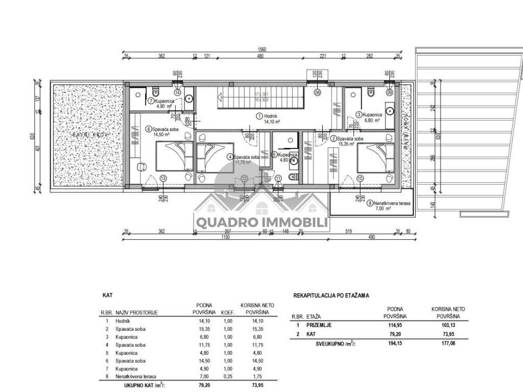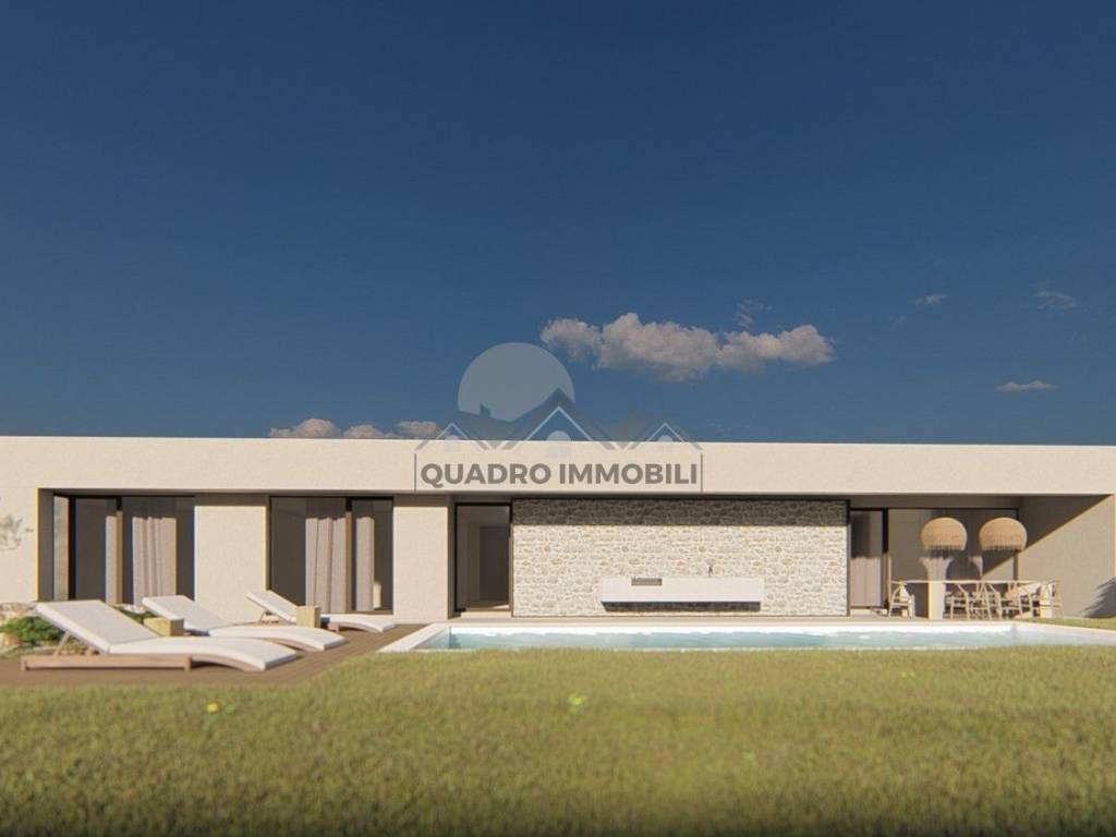 We offer a beautiful modern villa near Poreč under construction. The villa measuring 194.15 m2 will have a kitchen with a dining room and a living room on the ground floor, 1 toilet, 1 bathroom, 1 bedroom, a storage room and a covered terrace, on the first floor there are three bedrooms, each with its own bathroom. Also, one room will have an exit to the terrace.