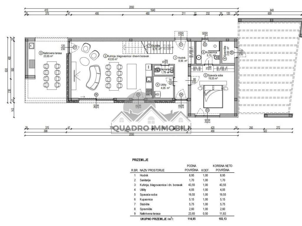 Additional equipment; video surveillance, alarm system with motion activation. The exterior joinery will be made of aluminum, and the interior doors will be made of plywood or solid wood. The garden will be equipped with an irrigation system, and the 40m2 swimming pool will be covered with foil.