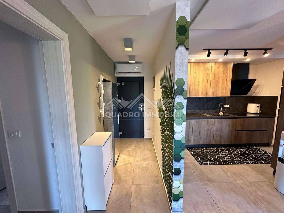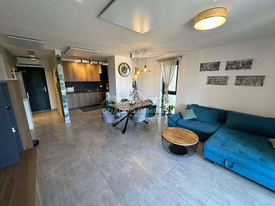 The apartment is sold furnished. Heating is by infrared panels, cooling by air conditioning. The parking lot is in front of the building. An additional parking lot is located behind the building where it is possible to charge an electric vehicle at the socket.