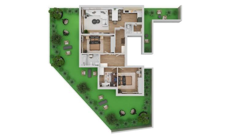 Jarun, NOVOGRADNJA, projekt naselja luksuznih stanova u neposrednoj blizini Jarunskog jezera. Sastoji se od 10 urbanih villa poluugrađenog tipa, svaka s četiri stana. Useljenje ljeto 2027. godine.STAN K10-S1 - četverosoban stan u prizemlju zatvorene površine 89,04 m2, vrt 121,98 m2. Pripada mu podrum 20,00 m2 i vanjsko parkirno mjesto 12,50 m2. Ukupne podne površine 235,16 m2, a obračunske netto korisna površina 130,67 m2.Stan se sastoji od ulaznog hodnika, dnevnog boravka s blagovaonicom i kuhinjom otvorenog tlocrta s izlazom na terasu i vrt, tri spavaće sobe, dvije kupaonice, izbe i garderobe.Izuzetno kvalitetna gradnja i oprema:Energetski certifikat najviše kategorijeVanjska stolarija - aluminijskog profila vrhunske kvalitete, ostakljeni trostrukim IZO staklom s dva stakla niske emisije (low-e).Aluminijske rolete (rolete s elektromotorom i komarnici)Balkonske klupčice: kamenBalkonska ograda: po projektuUlazna vrata - Adoro vrata - tvrtke Adoro d.o.o.Brojila struje, vode i plina su zasebni za svaki stanStubište - podesti i gazišta:kamenUnutarnja stolarija: drvena stolarija, lakiranaParket: prve klase - cjenovnog ranga do 60eur+pdv/m2Keramika prve klase cjenovnog ranga do 40 EUR + pdv/m2Sanitarije: prvoklasne kvalitete renomiranih proizvođačaKada / Tuš- po odabiru arhitekta i kupcaKlima i grijanje/hlađenje toplinska pumpa - DaikenVideo nadzorVideoportafonStandardi sanitarija: prvoklasne kvalitete renomiranih proizvođačaNalazi se na izvrsnoj mikrolokaciji. U neposrednoj blizini jezera Jarun, rekreacijske zone, škole, vrtića, javnog gradskog prijevoza (autobus, tramvaj) te svih sadržaja potrebnih za kvalitetan i miran život.Za ove ostale informacije stojimo na raspolaganju.... Više na eurovilla.hr, ID: 933962