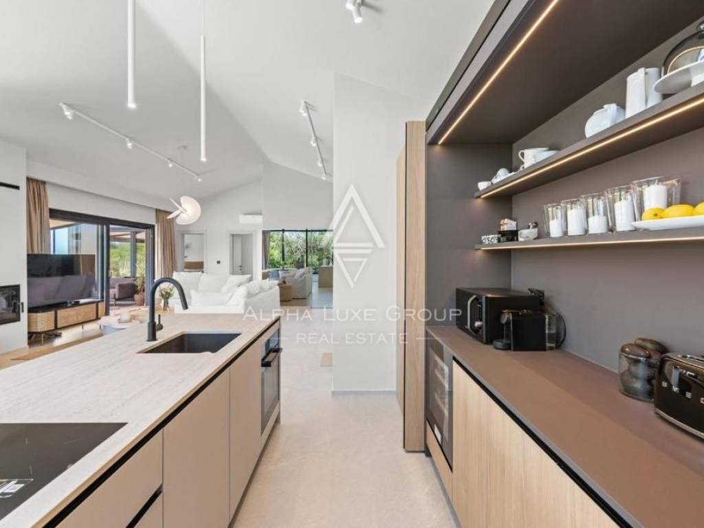 Gli interni sono completamente arredati con stile, con arredi selezionati di marchi prestigiosi e finiture di alto livello. L’ampia zona giorno open space collega armoniosamente soggiorno, cucina e sala da pranzo, creando uno spazio centrale ideale per la vita quotidiana, il relax e i momenti conviviali. La villa dispone di tre camere da letto eleganti, ciascuna con bagno privato, oltre a un locale tecnico che aggiunge praticità alla vita quotidiana. All’esterno si trova una cucina estiva con barbecue, perfetta per vivere gli spazi all’aperto durante i mesi più caldi.
