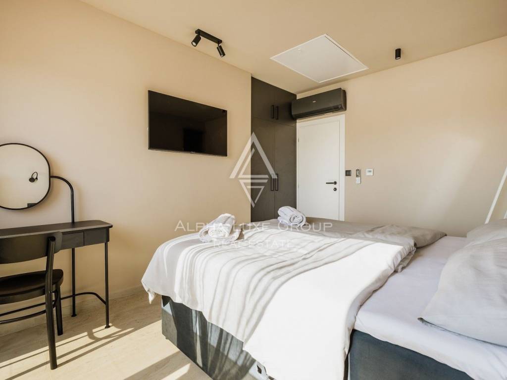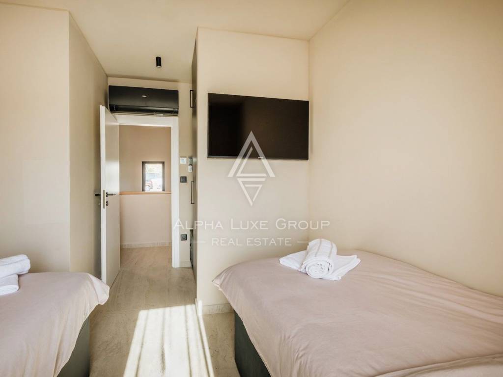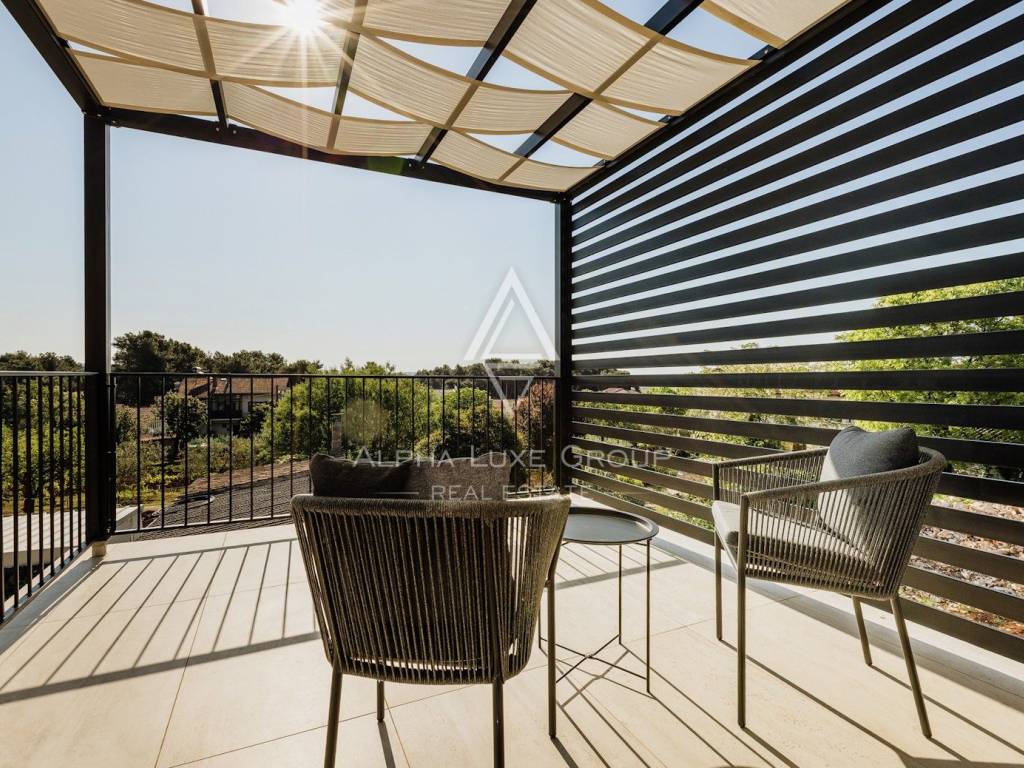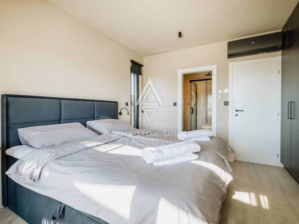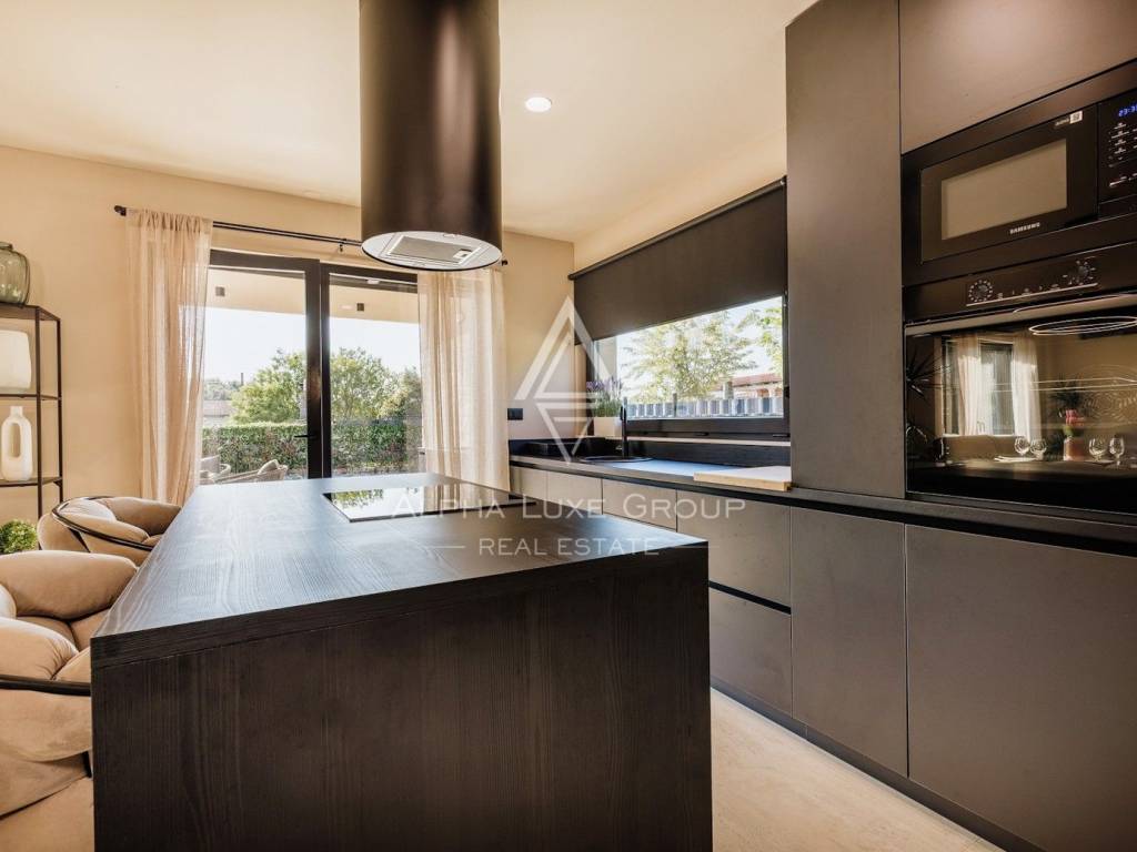 La casa si sviluppa su due livelli con una superficie abitabile totale di circa 170 m2, comprese le terrazze, ed è situata su un terreno curato di 540 m2. Al piano terra si trovano un ingresso, un luminoso e spazioso soggiorno con accesso diretto a una grande terrazza di 32,75 m2, un bagno di servizio, una cantina per vini e un locale tecnico. Al piano superiore si trovano tre confortevoli camere da letto e due bagni, tra cui una camera padronale con bagno privato e accesso a una terrazza coperta.