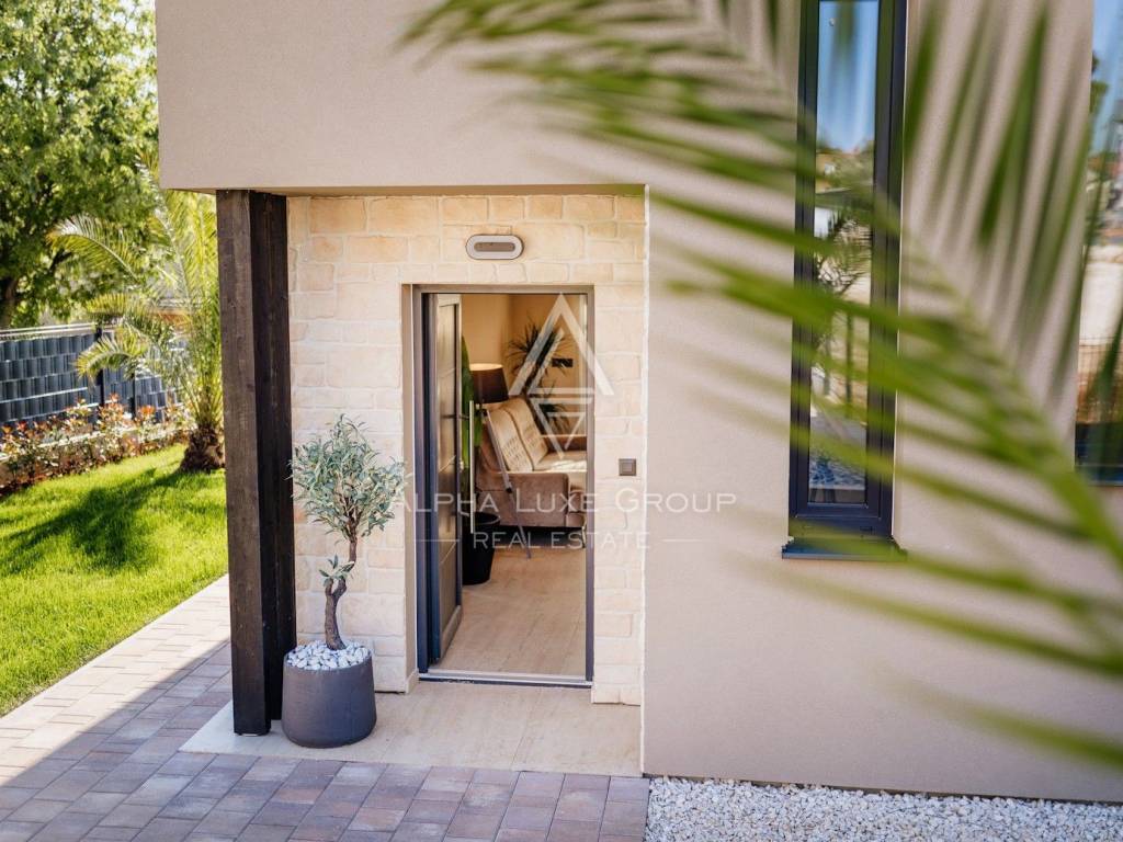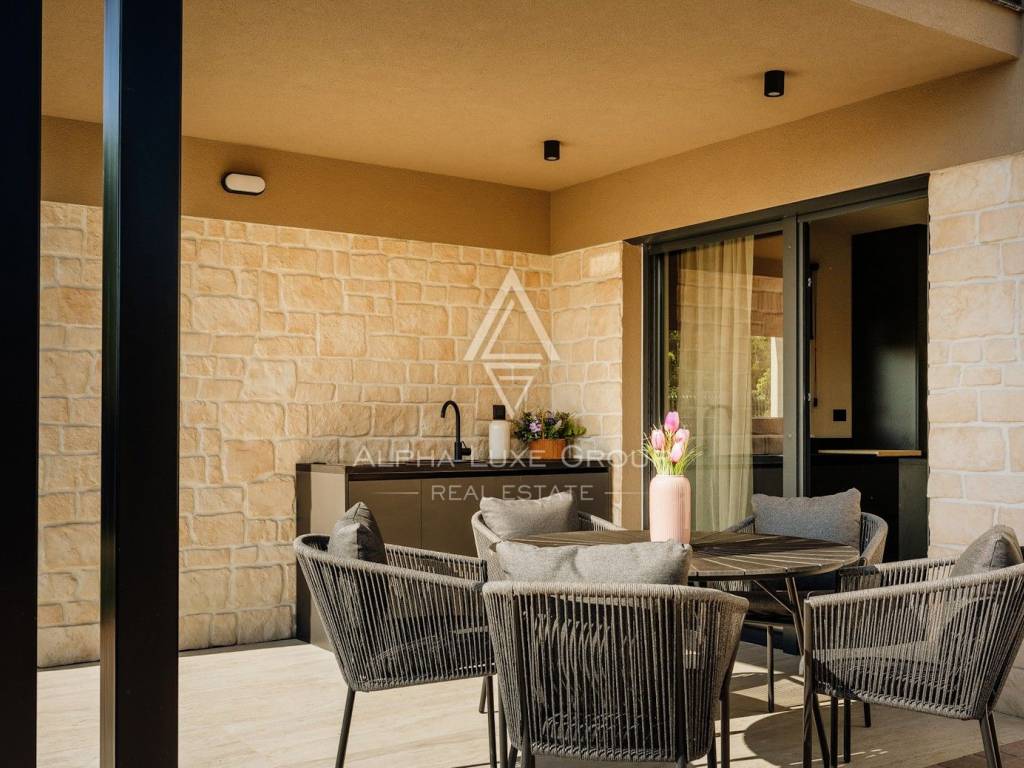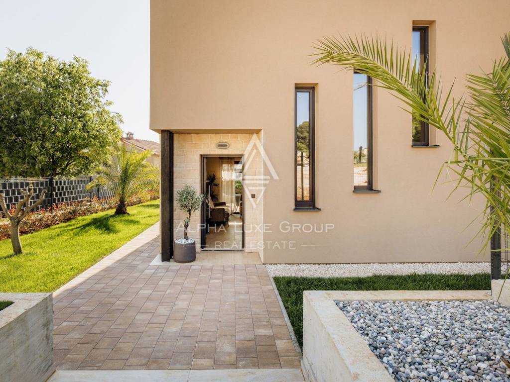Questa moderna casa indipendente si trova nel pieno centro di Tar, offrendo un perfetto equilibrio tra privacy e accesso immediato a tutti i servizi essenziali. Completamente arredata e progettata in stile architettonico contemporaneo, la proprietà è pronta per essere abitata subito ed è ideale sia come residenza sia come investimento.