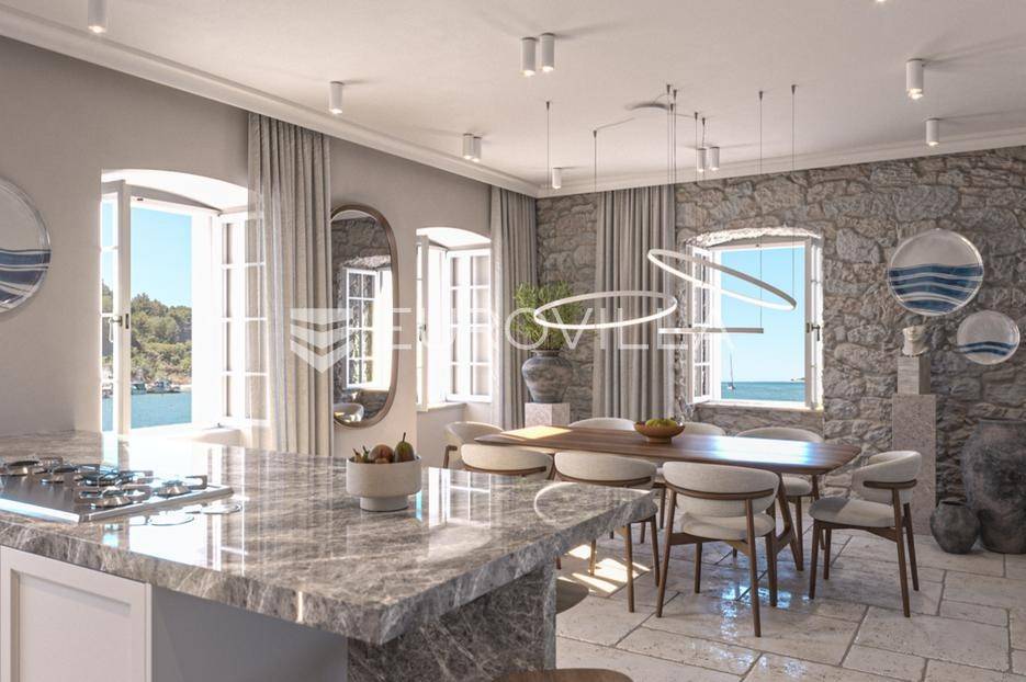 Prodaje se jedinstvena kamena vila s bogatom poviješću, smještena doslovno 1 metar od mora u predivnoj Tarskoj vali. Ova nekretnina nije samo dom, već i dio povijesti - sagrađena u doba Napoleona, služila je kao karantena za pomorce, čime dodatno dobiva na ekskluzivnosti i vrijednosti.Kuća je u procesu završne faze renovacije, što novom vlasniku ostavlja mogućnost da interijer uredi prema vlastitim željama i stilu.Sadržaj kuće:Suteren: autentična vinoteka s kušaonom vina, sauna za potpuni wellness doživljaj.Prizemlje: ulazni hodnik, toalet za goste, prostrana kuhinja s blagovaonicom, ostava, te udoban dnevni boravak s izlazom na terasu s pogledom na more.Kat: hodnik s kućnom teretanom, dvije spavaće sobe - svaka s vlastitom kupaonicom.Potkrovlje: dodatne dvije spavaće sobe, obje s privatnim kupaonicama - idealno za obitelj ili goste.Ova vila savršen je spoj povijesti, luksuza i blizine prirodi - idealna za miran život ili kao investicija za luksuzni turizam.Za više informacija stojimo Vam na raspolaganju.... Više na eurovilla.hr, ID: 411388