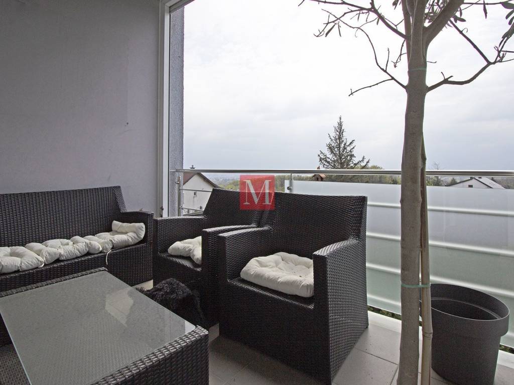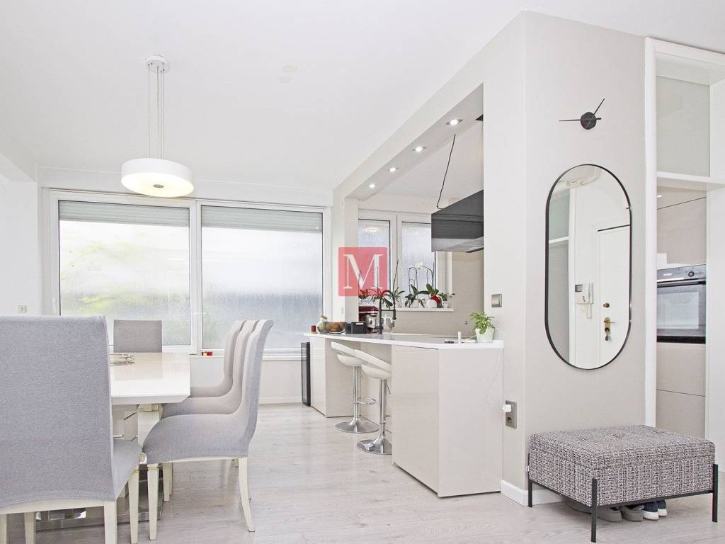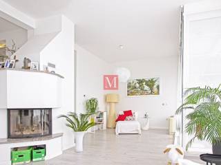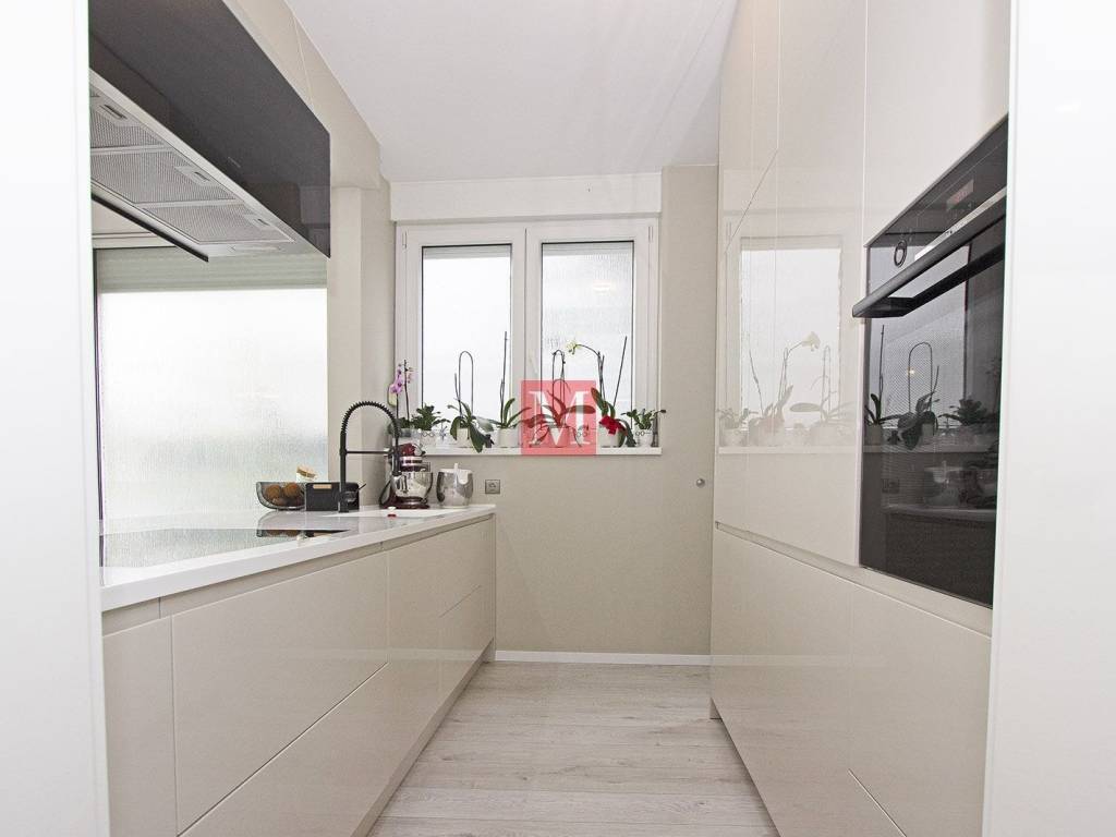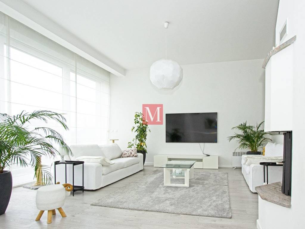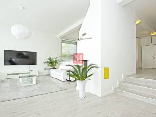 It consists of an entrance hall, a representative open space kitchen with dining room and living room, which leads to a loggia with a view of the city and garden, a guest toilet, a study, 3 bedrooms, 2 bathrooms and two additional loggias.