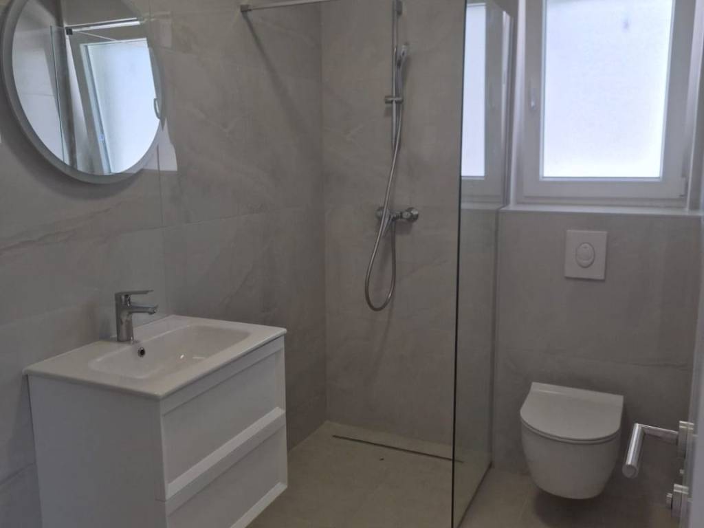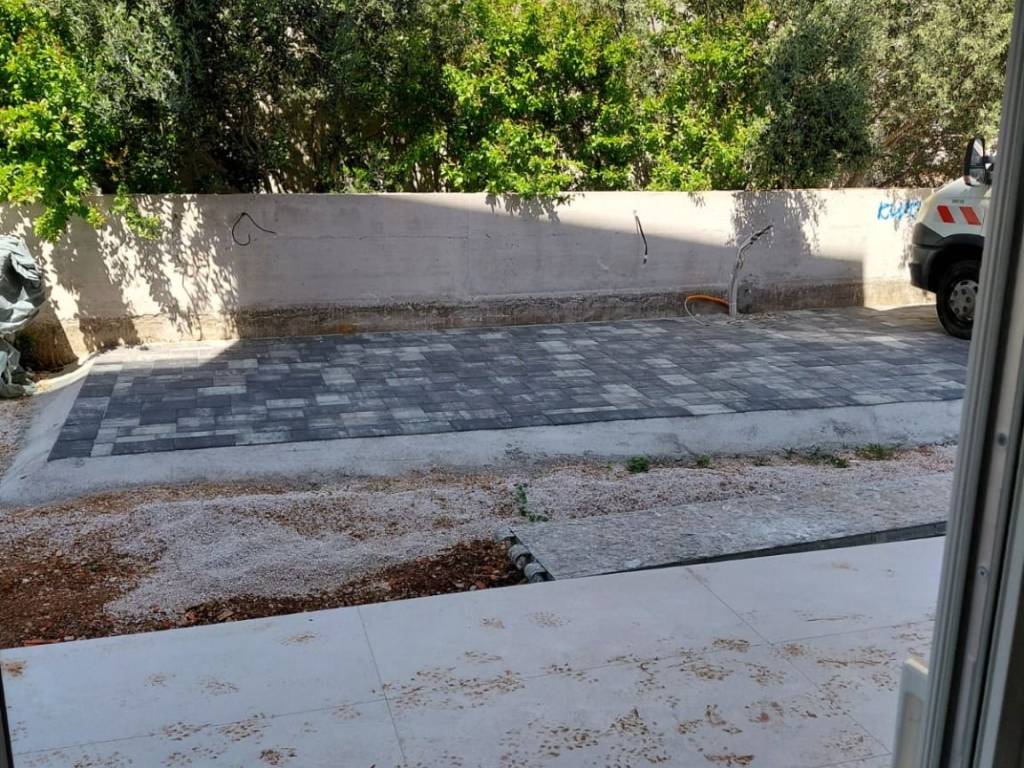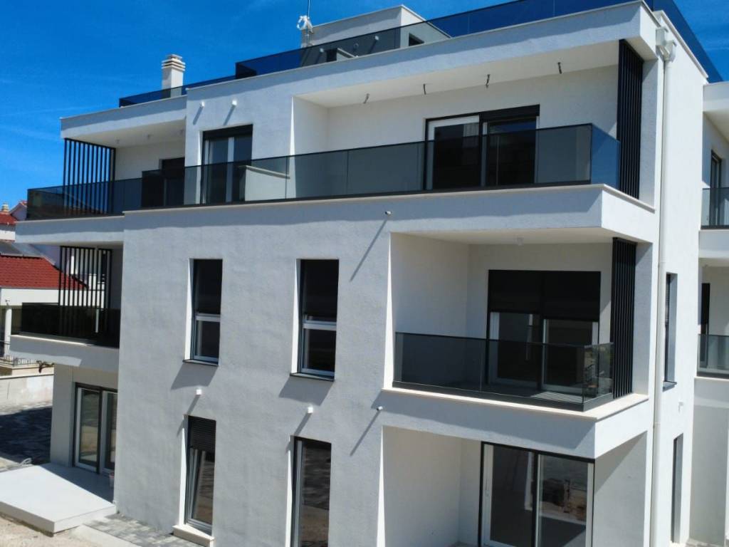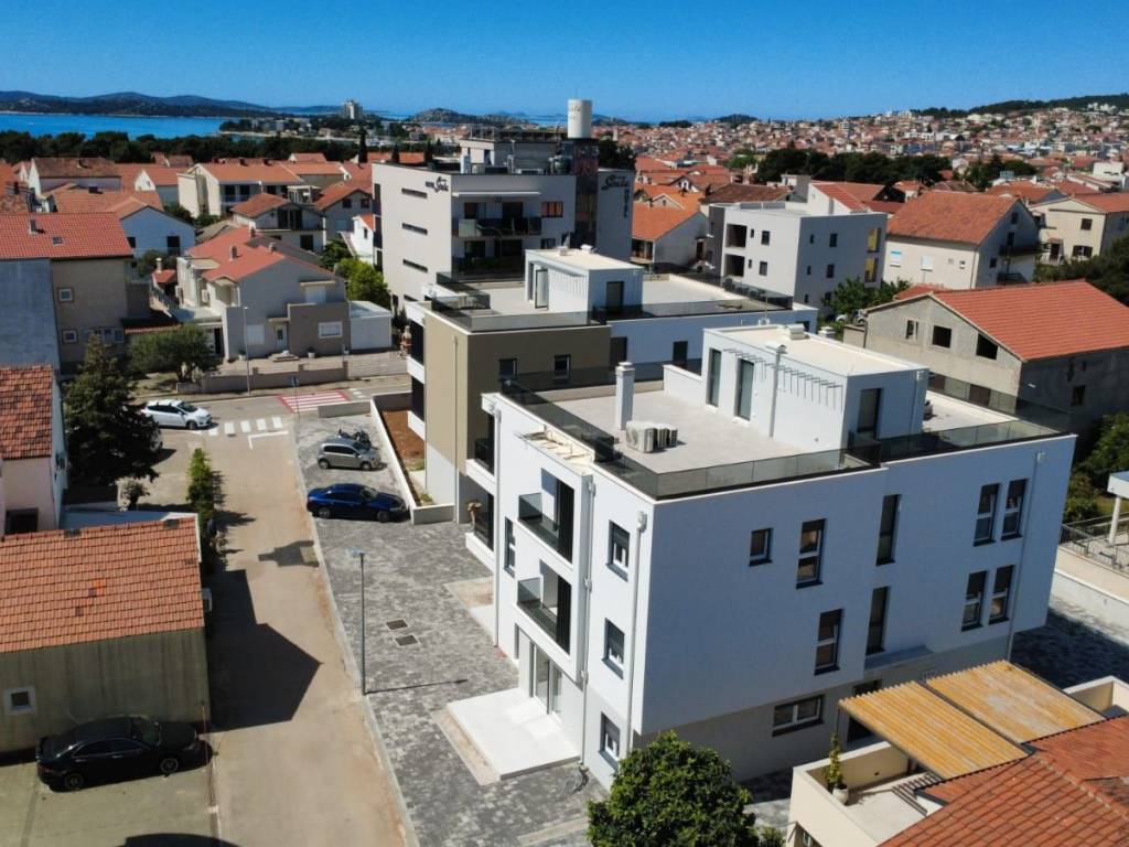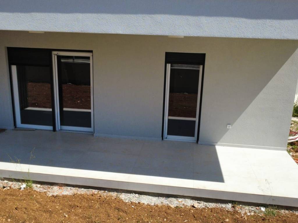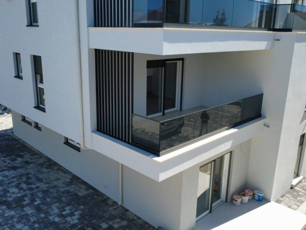 On an excellent location in Vodice, near Hangar Beach, a ground-floor apartment in a newly built building is for sale. The apartment is located on the southwest side of the building and consists of an entrance area, one bedroom, a bathroom, and a spacious living area with access to a covered terrace, which further leads to a private green garden area.