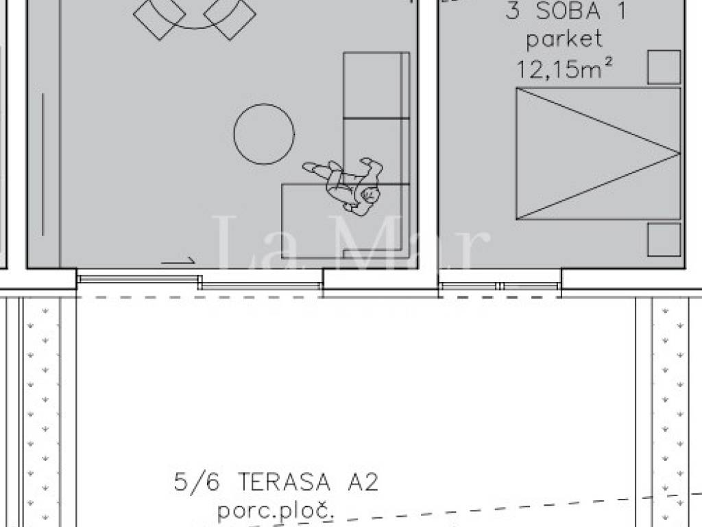 Stan A2 ukupne površine 60,44 m2 stambenog prostora nalazi se u prizemlju