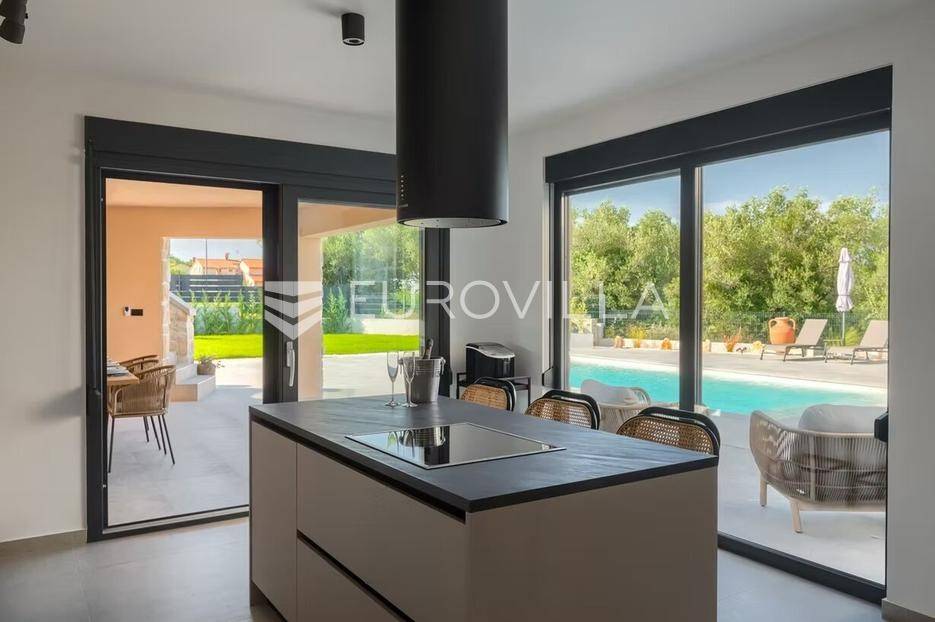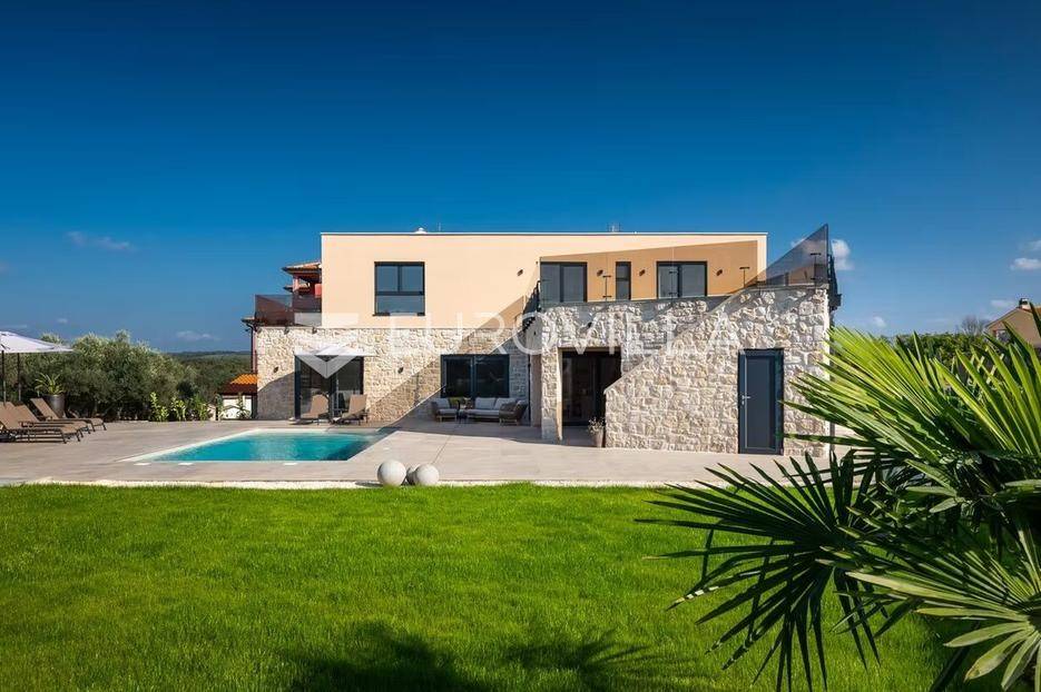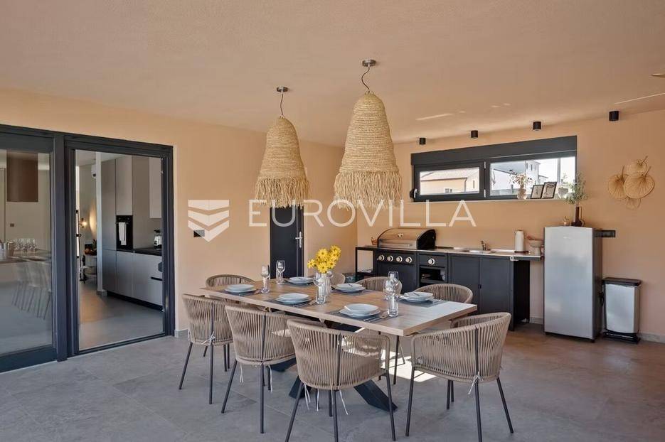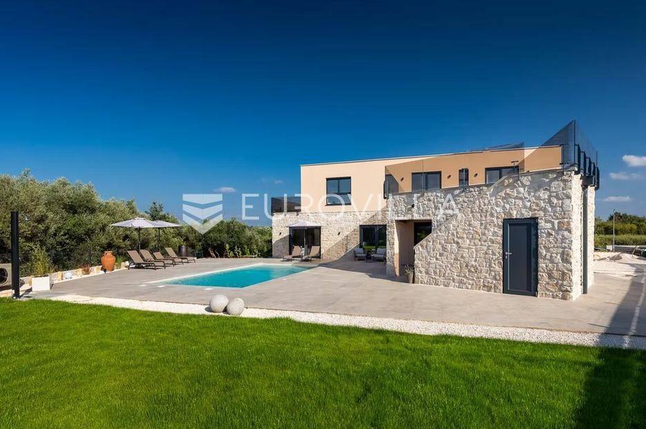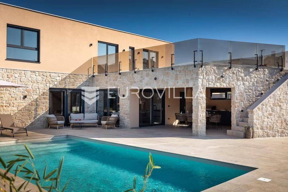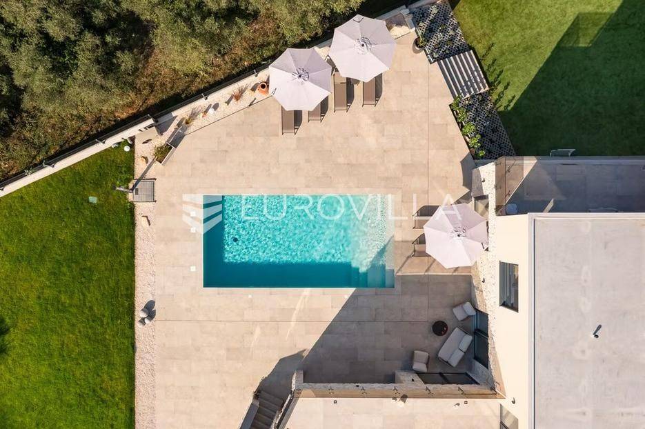 Predstavljamo izvanrednu modernu vilu u Taru — luksuznu rezidenciju od 213 m² na prostranoj, pomno uređenoj parceli s privatnim bazenom, svega oko 2 km od obale. Ova prestižna nekretnina spaja vrhunsku izvedbu i suvremenu opremu te nudi savršenu kombinaciju komfora, privatnosti i investicijskog potencijala.Interijer odiše suvremenim stilom i funkcionalnošću: raskošan open‑space dnevni boravak povezan s modernom kuhinjom osmišljen je za ugodan obiteljski život i nezaboravne trenutke s gostima. Velike staklene stijene ispunjavaju prostor prirodnim svjetlom te vode na prostranu terasu s pogledom na bazen i vrt — idealno mjesto za opuštanje i druženja. Vila raspolaže s četiri elegantne spavaće sobe i četiri luksuzno opremljene kupaonice, što jamči udobnost i privatnost za sve članove obitelji ili goste. U vanjskom dijelu nalazi se i kompletno opremljena ljetna kuhinja s roštiljem, savršena za ljetna okupljanja.Među dodatnim pogodnostima ističu se rezervirana parkirna mjesta, najkvalitetniji materijali i vrhunska izvedba koja garantira dugovječnost i jednostavno održavanje. Zbog vrhunske lokacije, profinjenog dizajna i bogate ponude sadržaja, ova vila predstavlja rijetku priliku — izvrstan izbor i za zahtjevne kupce koji traže luksuzan obiteljski dom, ali i za investitore usmjerene na premium turistički najam.Ne propustite ovu ekskluzivnu ponudu.Za više informacija stojimo vam na raspolaganju.... Više na eurovilla.hr, ID: 313046