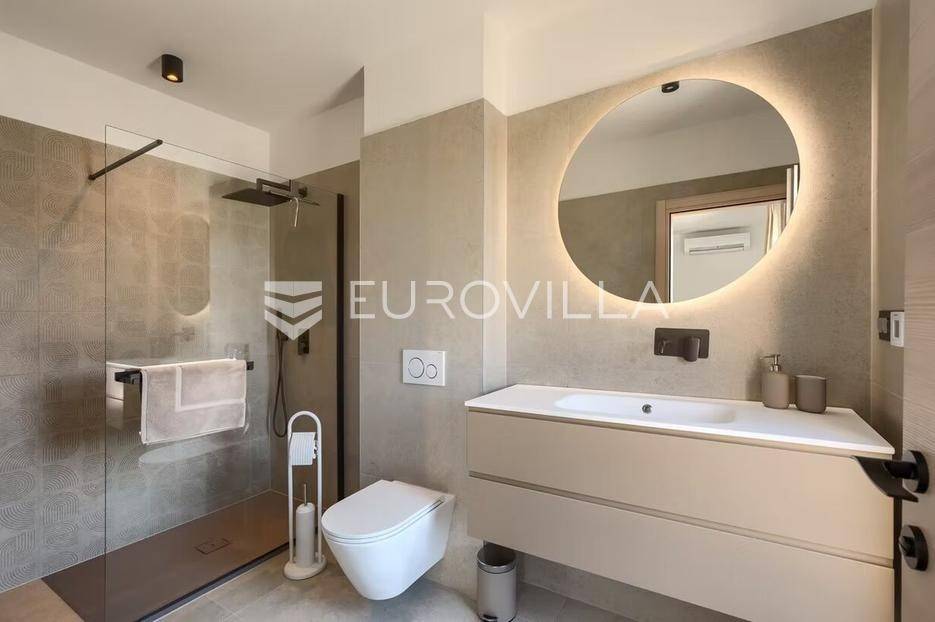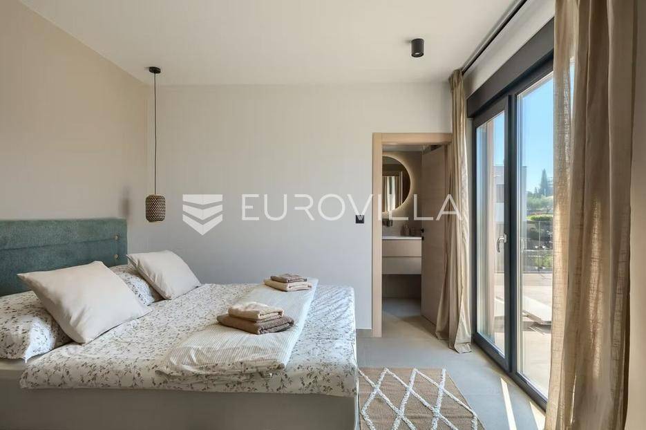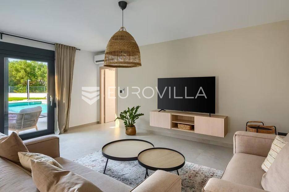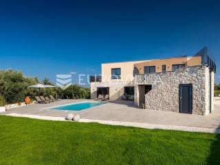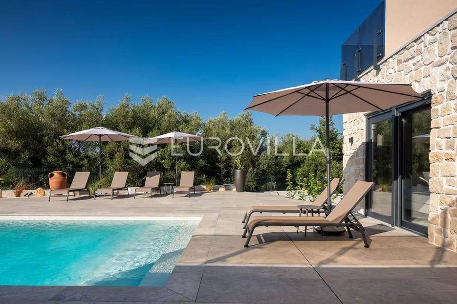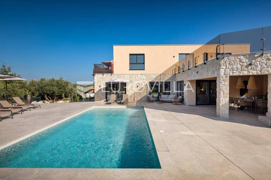 Predstavljamo izvanrednu modernu vilu u Taru — luksuznu rezidenciju od 213 m² na prostranoj, pomno uređenoj parceli s privatnim bazenom, svega oko 2 km od obale. Ova prestižna nekretnina spaja vrhunsku izvedbu i suvremenu opremu te nudi savršenu kombinaciju komfora, privatnosti i investicijskog potencijala.Interijer odiše suvremenim stilom i funkcionalnošću: raskošan open‑space dnevni boravak povezan s modernom kuhinjom osmišljen je za ugodan obiteljski život i nezaboravne trenutke s gostima. Velike staklene stijene ispunjavaju prostor prirodnim svjetlom te vode na prostranu terasu s pogledom na bazen i vrt — idealno mjesto za opuštanje i druženja. Vila raspolaže s četiri elegantne spavaće sobe i četiri luksuzno opremljene kupaonice, što jamči udobnost i privatnost za sve članove obitelji ili goste. U vanjskom dijelu nalazi se i kompletno opremljena ljetna kuhinja s roštiljem, savršena za ljetna okupljanja.Među dodatnim pogodnostima ističu se rezervirana parkirna mjesta, najkvalitetniji materijali i vrhunska izvedba koja garantira dugovječnost i jednostavno održavanje. Zbog vrhunske lokacije, profinjenog dizajna i bogate ponude sadržaja, ova vila predstavlja rijetku priliku — izvrstan izbor i za zahtjevne kupce koji traže luksuzan obiteljski dom, ali i za investitore usmjerene na premium turistički najam.Ne propustite ovu ekskluzivnu ponudu.Za više informacija stojimo vam na raspolaganju.... Više na eurovilla.hr, ID: 313046