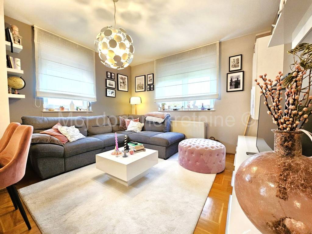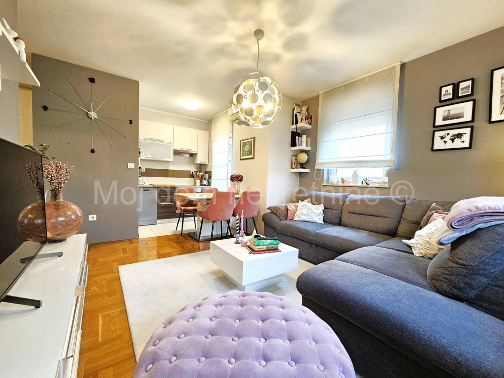 Prodaje se prekrasan 2-soban stan s balkonom i parkirnim mjestom. Nalazi se na 1. katu manje stambene zgrade od ukupno 2 kata. Stan je izrazito svijetao zbog svoje dvostrane orijentacije. Stan je opremljen kvalitetnim parketom, PVC stolarijom s roletama, protuprovalnim vratima i klima uređajem. 2020./21.g. kompletno je namješten i opremljen te se takav i prodaje. Nalazi se u kvalitetnoj zgradi sa izo fasadom (stiropor). Smješten je u blizini vrtića, škole, doma zdravlja, trgovine te drugih bitnih sadržaja.