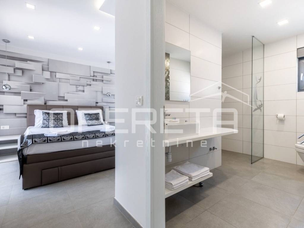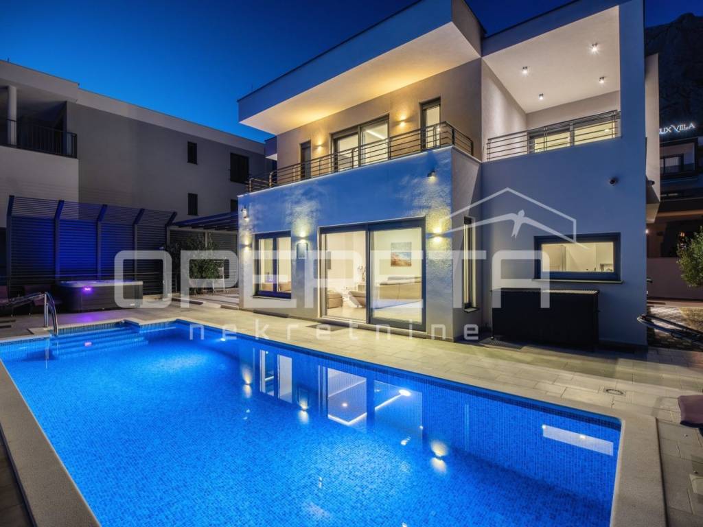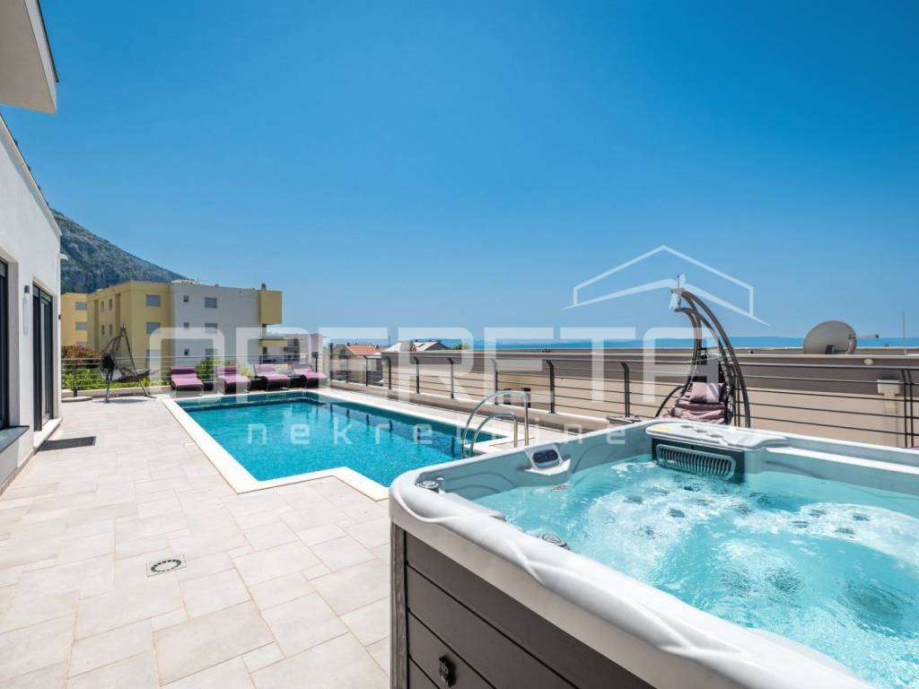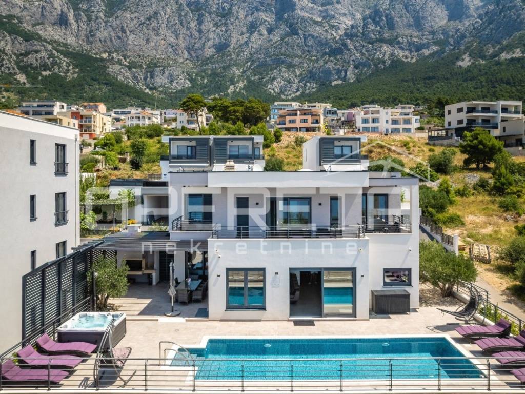 In the very heart of Makarska, on a prestigious location between the sea and the mountains, lies this exceptional luxury villa that blends contemporary design, comfort, and Mediterranean ambience. From the very first moment, it captivates with panoramic views of the sea, the city of Makarska, and Mount Biokovo, creating a unique atmosphere perfect for relaxation and a sophisticated lifestyle.