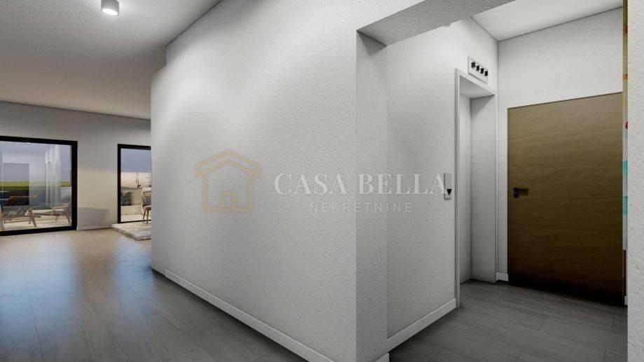 Casa Bella Real Estate offers you an apartment in Vrbnik on the island of Krk. There are only two other apartments in the same building. The open space consists of an entrance hall, a living room with a kitchen, a dining room and a sitting area. The apartment has two bedrooms with two bathrooms. From the living room you have direct access to the covered terrace. In the basement there is a fitness room and a sauna, which increases the value of the building. The property has been built with the best materials, including underfloor heating, insulation, aluminum carpentry and ceramics. The apartment will be fully completed and sold turnkey in early 2025. The apartment has two parking spaces. The view is completely open and includes the sea and the Velebit mountain, which is not easy to beat. The property is ideal as a tourist investment and as a space for family life. We would like to mention that Krk will soon receive a new road, the 'blue highway', which will significantly shorten the drive to the city of Rijeka and the connection to the large European highway network.