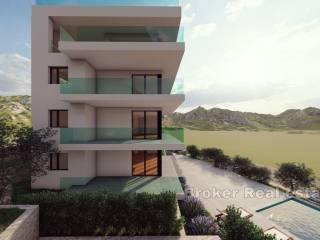 A luxury penthouse in a new development with a pool is for sale in a quiet part of Primošten. The apartment consists of 3 bedrooms, 3 bathrooms, an open-concept living room and kitchen, a spacious terrace, and a rooftop terrace where a pool will be located. The total area, including all associated spaces, is 185 m².   The price includes a garage with a total of three parking spaces. Also included in the price are fully equipped bathrooms, a kitchen, air conditioning, and the rooftop pool. The building is being constructed with exceptional quality, ensuring maximum comfort for future owners.   A shared pool in the courtyard, a private rooftop pool, an outdoor kitchen, a gym for co-owners, an elevator, and an unobstructed view of Primošten are just some of the features this property offers.   The expected completion date is spring/summer 2025. Nearby, there is a store and a health center, the sea is 500 meters away, and the center of Primošten is only 900 meters away. Split Airport is 40 kilometers away.   Available apartments:   Apartment S1: Ground Floor – 130m² – €450,000 Apartment S2: Ground Floor – 132m² – €450,000 Apartment S3: 1st Floor – 128.5m² – €450,000 Apartment S4: 1st Floor – 132.5m² – €450,000 Apartment S5: 2nd Floor – 128.5m² – €450,000 Apartment S6: 2nd Floor – 132.5m² – €450,000