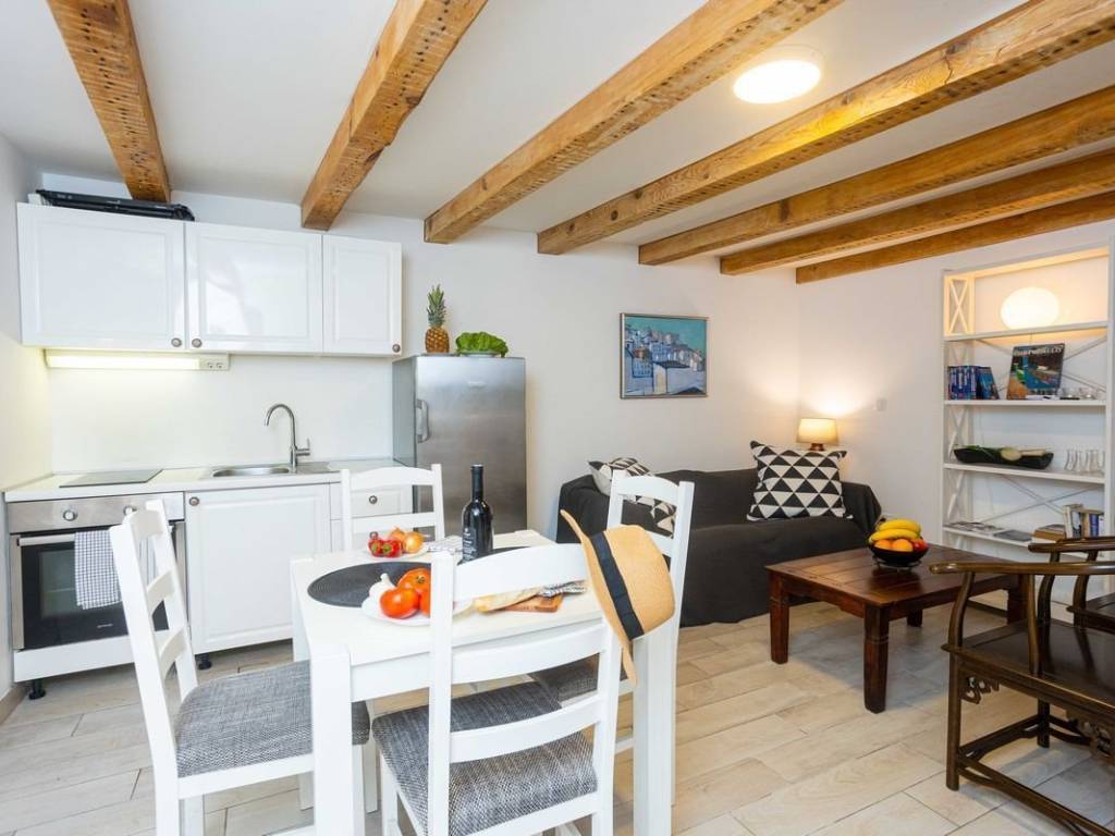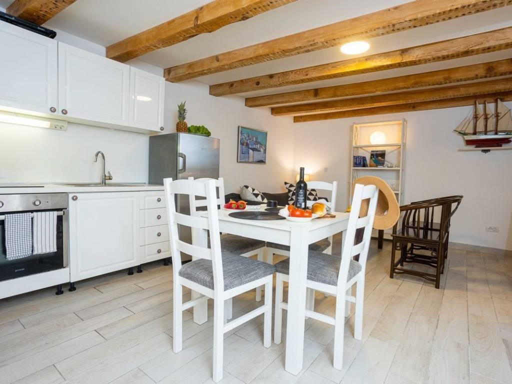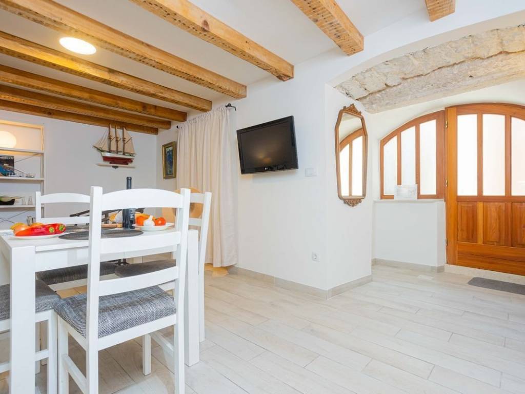 For sale, an apartment located in the center of the city of Split, in the Varoš district, which exudes history, tradition and the authentic Dalmatian spirit. Its narrow streets, stone houses and historic churches make it one of the most charming parts of the city. The apartment is located on the ground floor of one of the old stone houses that has retained its original appearance. On a total of 30 m2, there is a comfortable bedroom, bathroom, equipped kitchen, dining room and living room. In 2015, an adaptation was made and the electrical and plumbing systems were changed, while the space itself became more functional. A special element is the unique, original stone wall that represents the traditional heritage of the city. An air conditioner is used for heating and cooling. The house is surrounded by a stone wall, which provides the tenants with some privacy. In addition to living in the center of all events, near Diocletian’s Palace and the waterfront, this property offers an excellent opportunity for tourist rental.