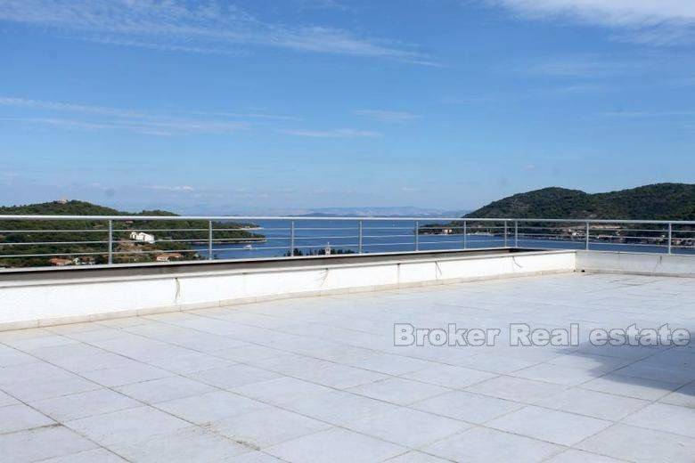 New luxurious villa, on two floors, located on the island of Vis, area 311 m2, with a plot of 1800 m2, built in 2011 year. The ground floor consists of nice apartment of 60 m2 and garage. On the first floor is a spacious apartment of 120 m2, consisting of kitchen, dining room, living room, two bedrooms with en-suite bathrooms, and two spacious terraces (covered and uncovered, each of 50 m2). On the second floor there are 4 rooms of different sizes (20-35 m2), each with en-suite bathroom, and a beautiful rooftop terrace, provided with elements for installation of jacuzzi. The house is fully furnished and equipped, and is sold complete with luxurious furniture that is custom-made. Also, there is a swimming pool (6X4) on west side of the house. This modern property provides a great time to enjoy the comfort that offers, as well as a beautiful view of the whole Vis bay.