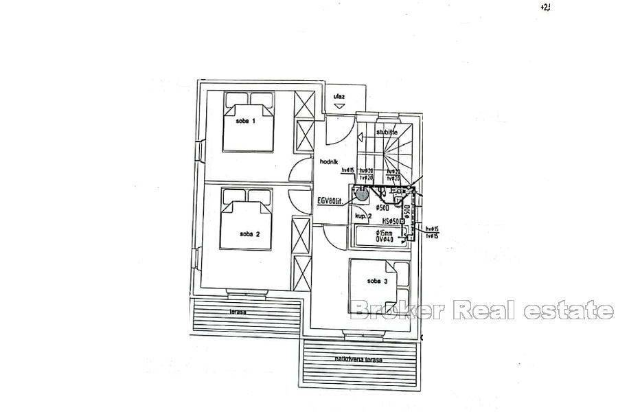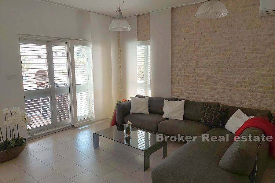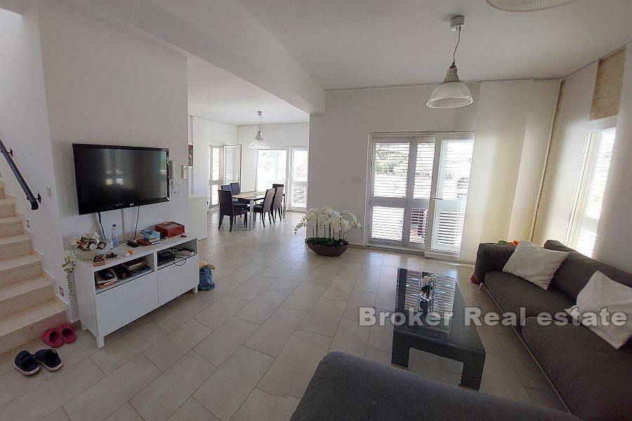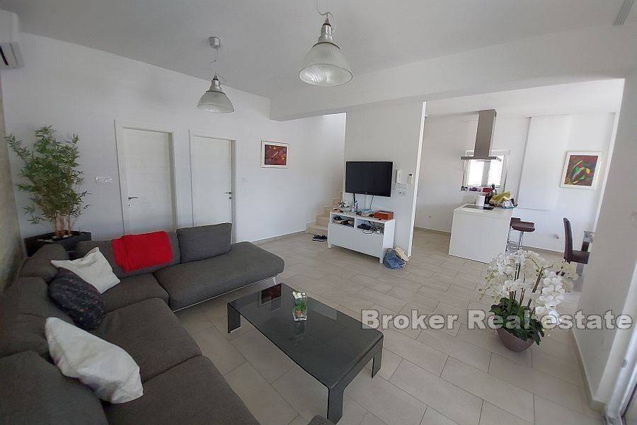 Stone house in the first row to the sea in a quiet place in Rogoznica. The house with a total living area of 106 m2 is spread over the ground floor and first floor. On the ground floor there is a bathroom, a storage room, an open concept kitchen with a dining room and a living room with access to a covered terrace. The first floor consists of one bathroom and three bedrooms with access to the balcony with an open view of the sea. The house is air-conditioned and has one covered parking space and barbecue for use. The property’s attractive offer is the walking distance from the beach and the proximity of the necessary facilities for living. Rogoznica is a Mediterranean place in the center of Dalmatia, between the Krka National Park and the Kornati National Park and the old towns of Šibenik, Skradin, Trogir and Split. It consists of a 50 km long coast, which is a treasure trove of pebble and rocky beaches along its entire length. An ideal place for living or tourist business.