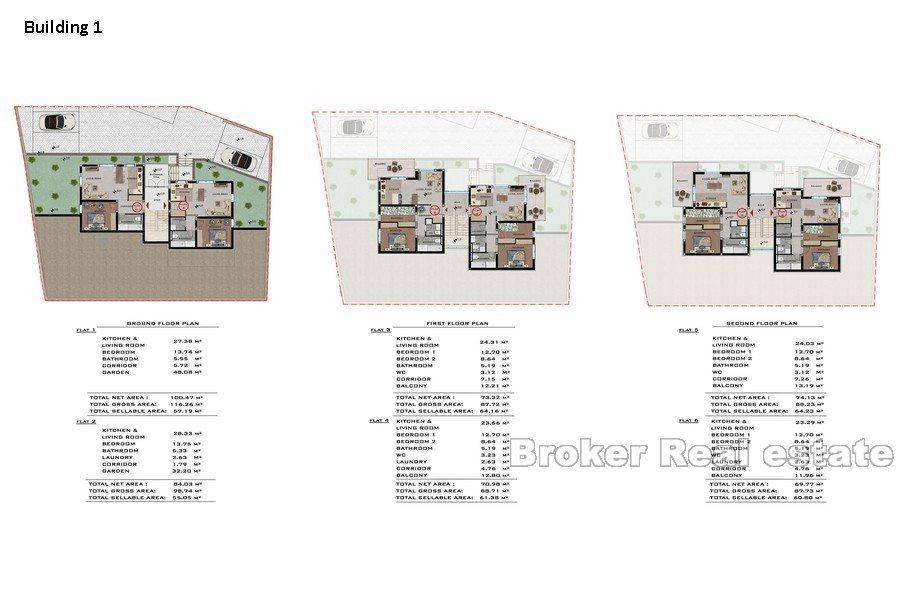 Two luxury residential buildings with 6 apartments each, under construction, on the northern side of the island of Hvar. In an excellent location, they will be surrounded by newly built villas and the apartments will offer a view of the sea. The facilities will be north oriented and access will be provided immediately from the road. The buildings will have a total of three floors and each floor will have two mirror apartments. We offer one bedroom and two bedroom apartments. One bedroom apartments will consist of a bedroom, bathroom, hallway, laundry room and kitchen with dining room and living room. Two bedroom apartments will consist of two bedrooms, bathroom, toilet, hallway and kitchen with dining room and living room. Each apartment will have access to a balcony, that is, a terrace and a garden. The buildings will each have 6 outdoor parking spaces. Top quality materials will be used in the construction and furnishing (tiles and high class sanitary ware, air conditioners in every apartment). Apartments are an excellent choice for all those looking for a property in a quiet location, near the sea. BUILDING 1 S1, S2 – (1 bedroom) – 310,000 € S3, S4, S5, S6 – (2 bedrooms) – 330,000 € BUILDING 2 S1, S2 – (1 bedroom) – 300,000 € S3, S4, S5, S6 – (2 bedrooms) – 340,000 €