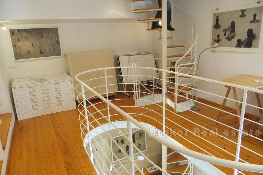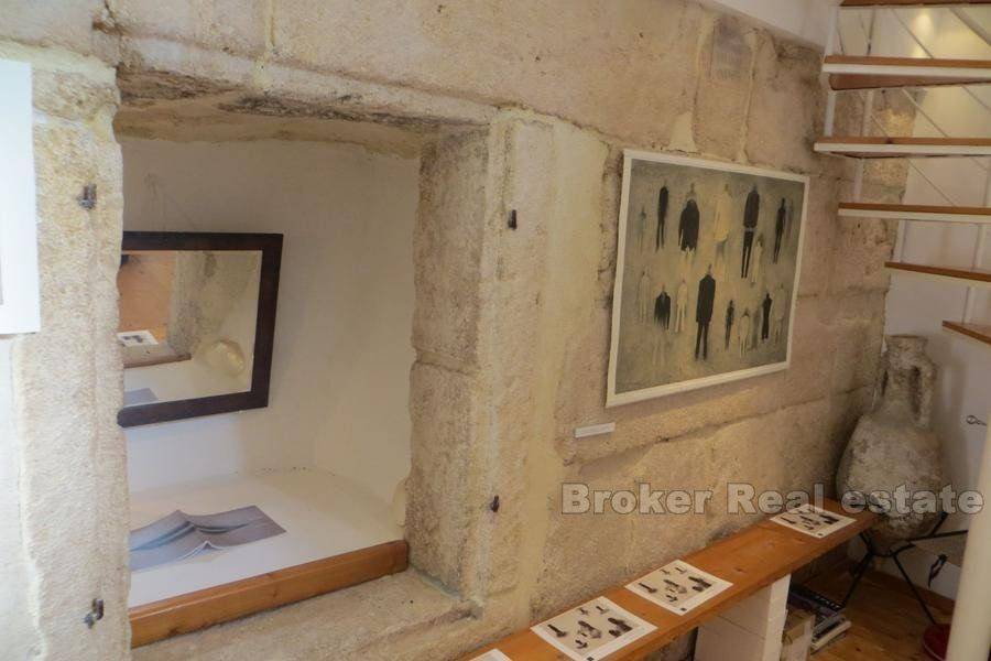 Attractive residential-business space in the heart of Diocletian’s Palace housed in a stone house. Completely renovated, currently being converted into a gallery space. It consists of three floors, total living space of 75m2. Within the space is the original Diocletian’s palace wall which gives a special dimension to the property itself. Due to the extremely good location this stone multi-storey is ideal for commercial purposes of tourist renting.