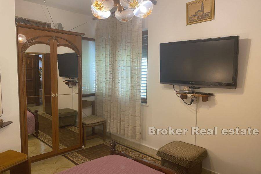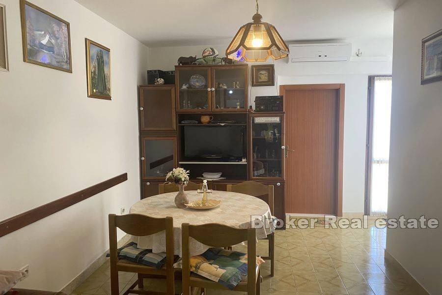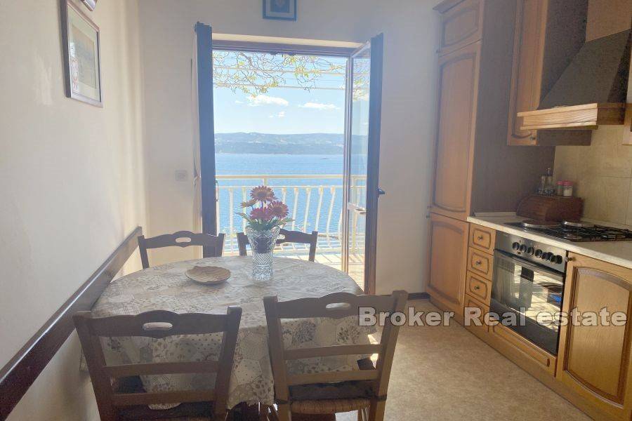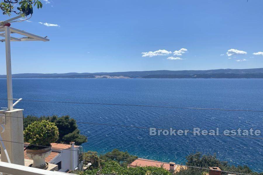 A beautiful apartment house for sale in a quiet location not far from Omiš. It is only 50 m from the sea, spread over three floors. Each floor has a beautiful view of the sea and the islands. The total living area is 191 m2 and extends on a plot of land of 535 m2. As already mentioned, the property consists of 3 floors divided into 3 separate residential units. On the ground floor there is an apartment with two bedrooms, bathroom, living room and kitchen. Immediately after exiting the apartment, there is a covered area and a garden designed for enjoying hot summer days. On the first floor there is a larger apartment with two bedrooms with a beautiful view of the sea, a large living room, kitchen and bathroom. On the second floor there is also an apartment with two bedrooms, living room, kitchen and bathroom. One room and the living room have access to a terrace with a stunning view of the sea. Behind the house there is an auxiliary room with a barbecue and a small pantry. And an area with a table and chairs intended for socializing and relaxing. There are three parking spaces in the immediate vicinity, one for each residential unit. The highlight of this property is certainly not the terraces with an unobstructed view of the sea that will not leave anyone indifferent.