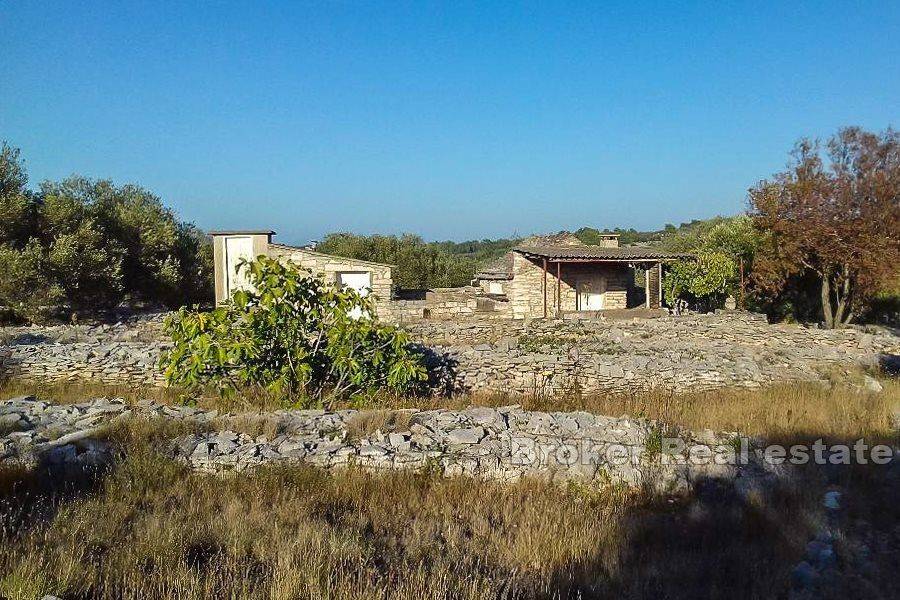 Trapezoidal land near Vela Luka, overlooking the sea on its south side. The plot has an access road, while electricity is 100 meters away. On the plot there are three smaller houses of approx. 5, 10 and 15 m2, of which two; 10 and 15 m2 connected, while the house of 5m2 is across from the other two and serves as a toilet. Since this is agricultural land, additional construction on this plot, as well as on the surrounding ones, is not possible, which leaves the possibility of a peaceful stay, without noise and crowds. It is only possible to reconstruct the houses in the existing dimensions and get a smaller building with an area of approx. 25 m2.