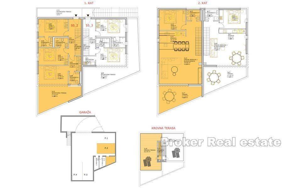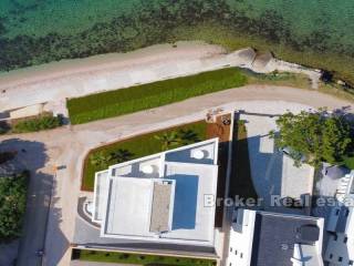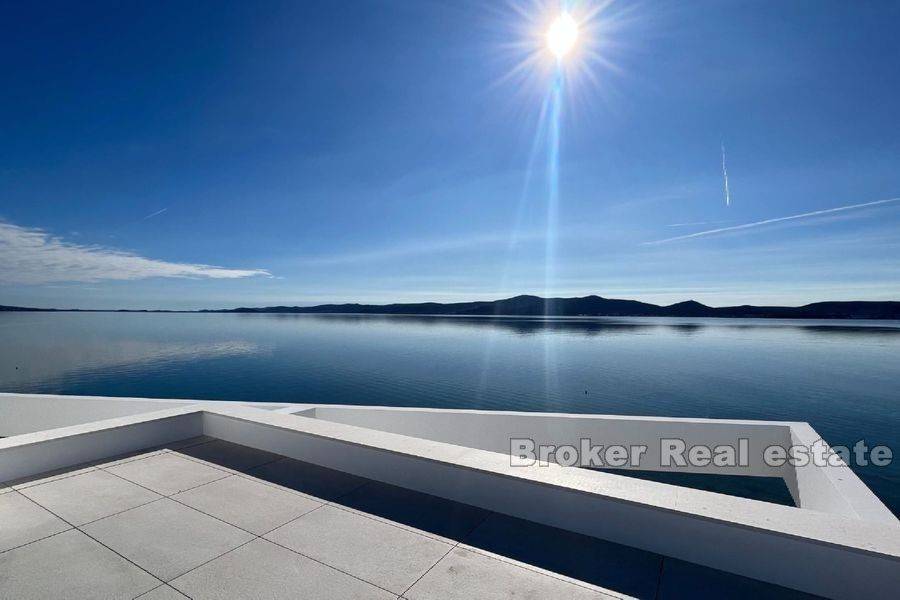Zadar luxurious modern apartment first row to the sea. The apartment is located on the first and second floor with a roof terrace, in a smaller newly built building, in a prime location right next to the beach and the sea. The apartment is spread over three floors: – On the first floor there are three rooms, each with its own bathroom and a large terrace. – On the second floor there is a large living room with a kitchen and dining room, a bedroom, a bathroom and a large terrace. – Roof terrace at the top of the building with an open view of the sea and nearby islands. The property will be fully furnished with Italian designer furniture. Excellent location, close to restaurants and shops, the city of Zadar, the highway and the airport. Ready to move in immediately.