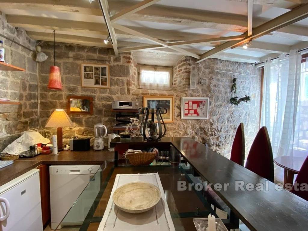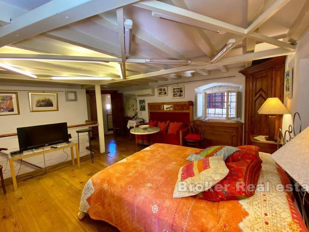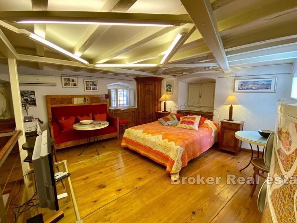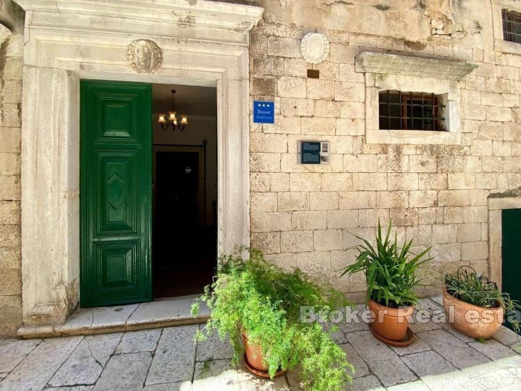 We are selling an apartment located in one of the most attractive locations in the city, near the Šibenik Cathedral itself.   It is a three-story apartment located in a historic noble palace dating back to the 15th century.   The very interior of the palace, as well as this apartment, is like a museum space where different cultural-historical and stylistic periods are mixed. The interior is excellently preserved, renovated – adapted for today’s modern lifestyle.   In addition to housing, the space can be used as a business space, first of all for a high-end restaurant, considering that next to this palace there is the possibility of renting an outdoor shed with a view of the Šibenik Cathedral.