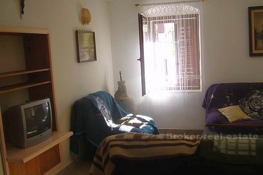 Total surface of 70 sq m old stone house on 3 floors and garden of 18 sq m situated in old part of town Split. Two double rooms apartments are situated on ground floor. On the first floor are kitchen, living room, bathroom and big terrace. Second floor consists of two bedrooms and bathroom. House has TV SAT, air condition and it is fully renovated. Distance from the sea is 150 meters