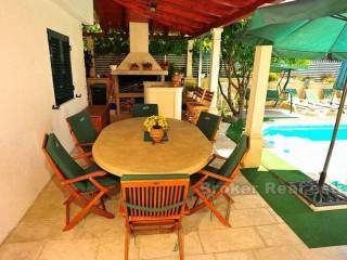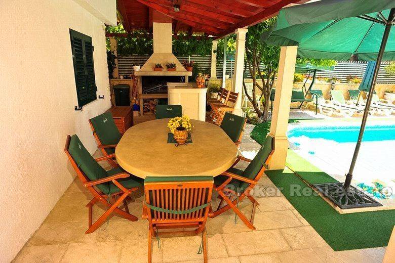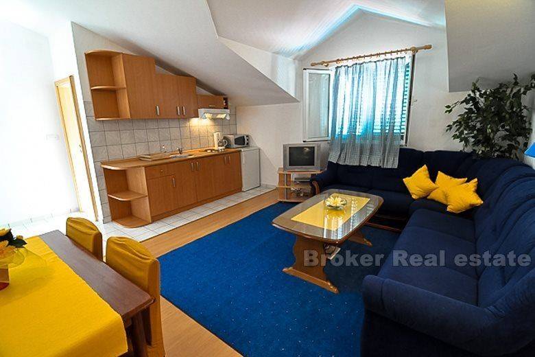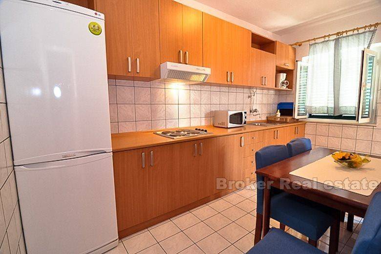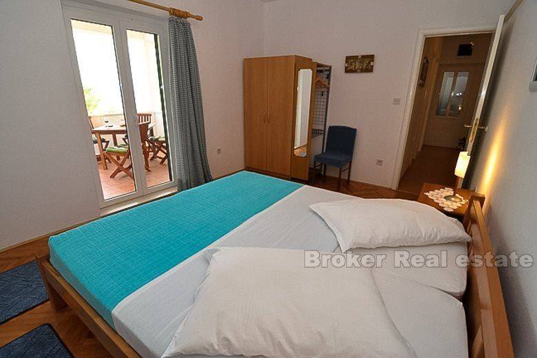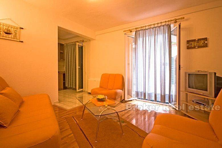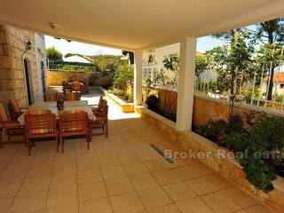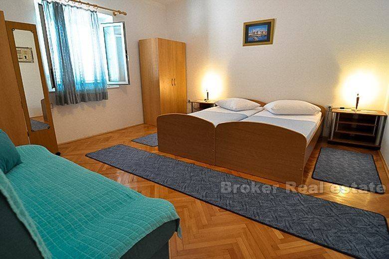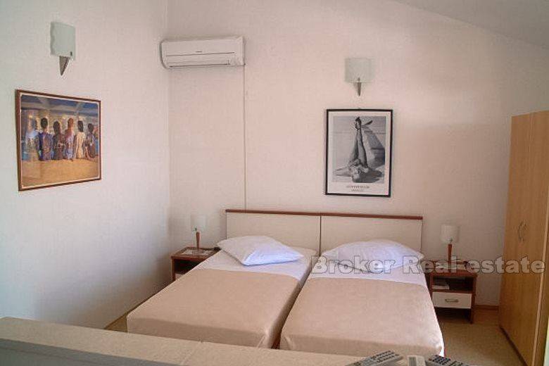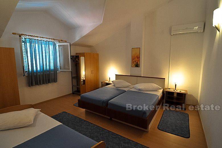 Beautiful apartment house for sale, with a view of the sea and mountains, situated in Sutivan, in a quiet and charming place on the north side of the island of Brac, near Supetar as the island’s capital, where is the ferry port that connects Brac with Split. The house is located on a plot of 800 m2, and covers three floors with a total of 610 m2 of living space, which is divided into 9 apartment units of different sizes. Because the house was built for private use, the owner made sure that the house provided plenty of opportunities for enjoyment, so within the outer boundaries of the property was implemented a spacious pool, with a bar and a nice marble table for 8 people, and an elegant fireplace. On the ground floor there is a nice tavern / smaller restaurant with a barbecue and an outside terrace protected by noise or wind, and since the apartments are rented in the summer, the tavern is intended as a place for serving breakfasts and common dinners for home users. Within the mentioned space there is a separate room with a pool table. In front of the property is a spacious private parking for 5 cars. The house is located at a distance of 50 meters from the sea, where there is a beautiful pebble beach and a long promenade throughout the village, with which it is possible to reach all the way to Supetar, which is 4 kilometers from Sutivan. Due to its location just outside the city center, the house offers its users complete peace of mind and the possibility of carefree relaxation, while the place itself offers a very good offer in the form of restaurants, bars, markets, sports fields, post office, etc. Summarizing everything, this is an interesting offer that captures excellent tourist results and provides its guests with a quality stay, as Sutivan as such is an ideal place to stay for all generations, both young adventurers and families with children, as well as the elderly population of all ages groups can find and experience something new in this historic city with a unique atmosphere.