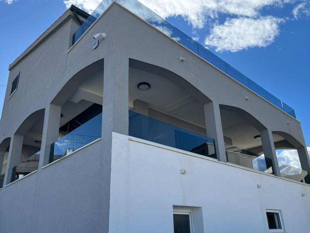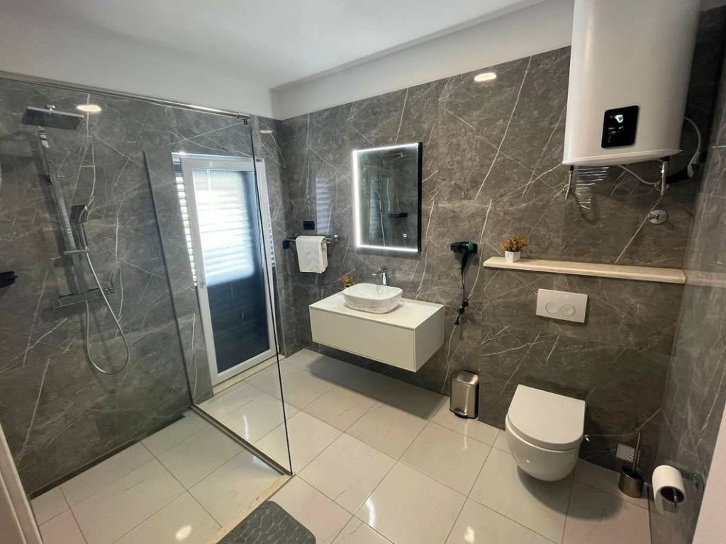 Detached modern villa with swimming pool for sale. The total living area is 299 m2, the house is located on a plot of 366 m2. The house consists of 3 floors. On the ground floor there is a large storage room, while on the first floor there are 2 bedrooms, a bathroom, a hallway, a kitchen connected to the dining room, a living room and a large terrace. The second floor consists of 3 bedrooms, two of which have a separate bathroom and a balcony, while the third room has a separate bathroom and two balconies. The yard consists of a large swimming pool 36 m (8×4.5), a children’s playground, 3 parking spaces that can be closed and converted into a garage, and a terrace with additional square meters can be obtained there. It is ideal as a cottage or a house for everyday life.