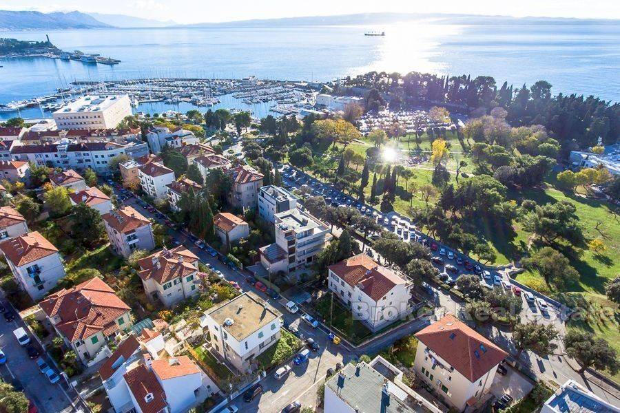 The villa is spread over three floors, it is built on a land of about 720m2 and has a total gross floor area of 330m2. A cultivated nursery with Mediterranean herbs offers a daily meditative atmosphere and its size gives enough space to build a swimming pool. The large terrace on the last floor overlooking the sea can also serve as a relaxation and recreation area. Apart from the villa there is also an auxiliary facility or a garage of 25m2 The house is located in a quiet location, in the best part of Split Meja, only a few minutes walk to the sea and 5 min. Walk to the river and the city center. The property is in its original condition and requires refreshment.