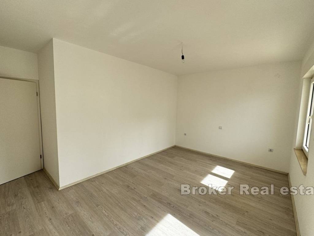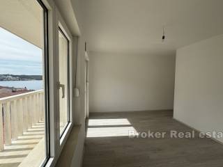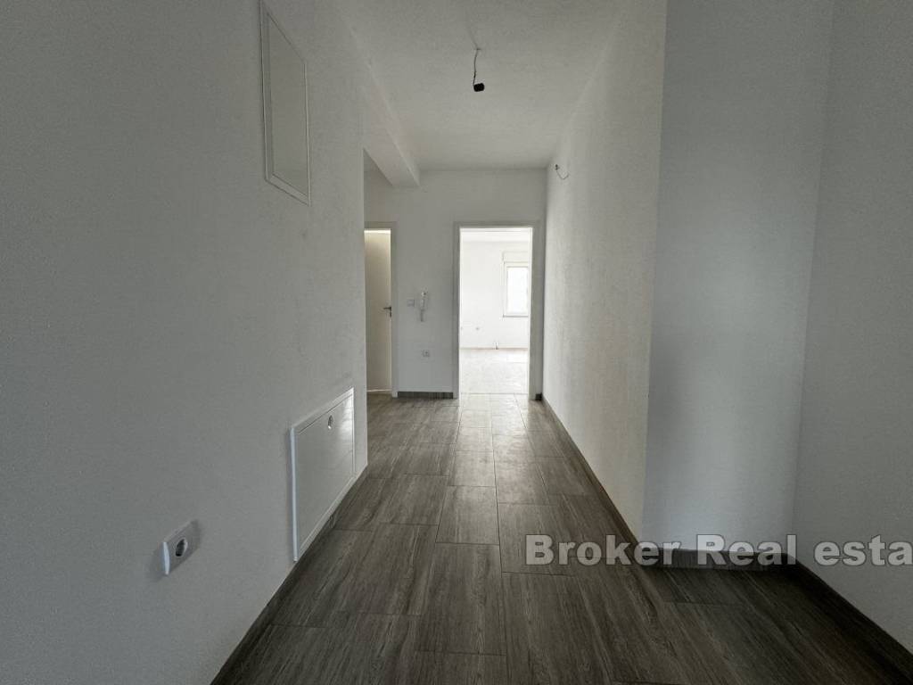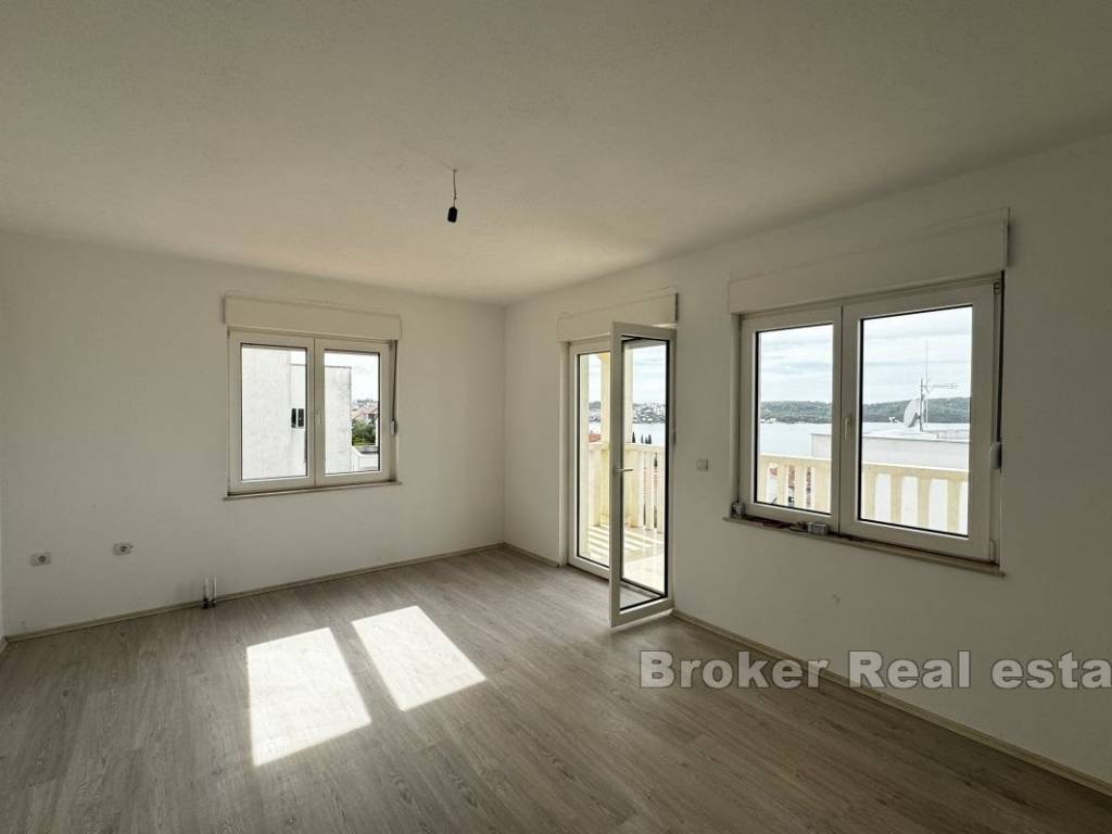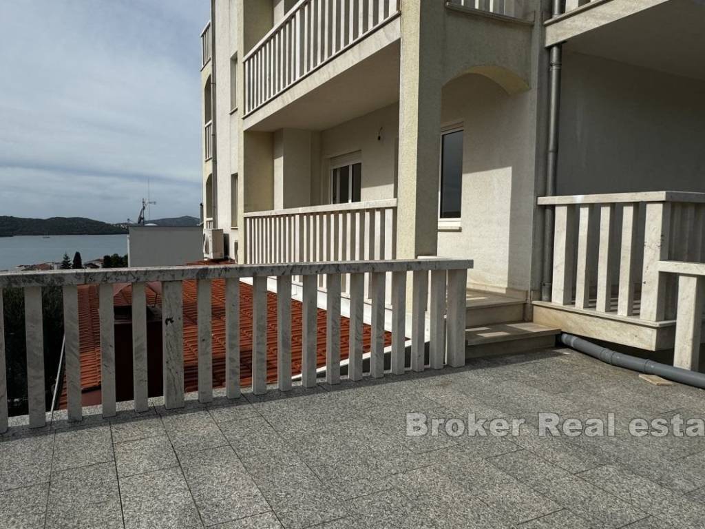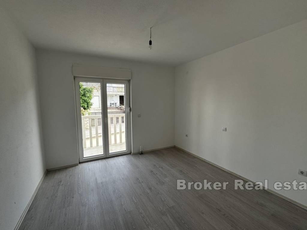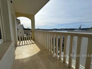 This comfortable three-bedroom apartment is located on the southern side of the island of Čiovo, on the first floor of a small residential building. The apartment consists of a functional entrance area that leads to spacious and bright rooms. It features three cozy bedrooms, offering plenty of space for a family or guests. Two of the bedrooms have access to a balcony, while the third bedroom opens onto a large terrace of 48 m². The kitchen is connected to the dining area and the living room, which also has access to a balcony with a sea view. In front of the entrance door, there is an enclosed terrace that provides additional space for relaxation. The apartment is being sold unfurnished, allowing the future owner to furnish it according to their preferences. A garage with a total area of 18 m² is also included, which is a significant advantage in densely populated urban areas like Čiovo. The apartment’s location, near the town center, makes it an ideal choice for those looking for a permanent residence or for investors seeking a property with potential for short-term or long-term rental. The proximity to Trogir allows easy access to all essential amenities, including shops, restaurants, schools, kindergartens, pharmacies, as well as the famous historical landmarks of Trogir, which is a UNESCO World Heritage site. This makes the apartment a perfect choice for those who want to enjoy the benefits of urban living, combined with the comfort and tranquility of their own home.