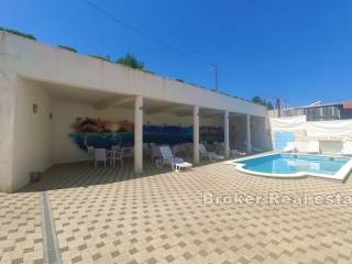 For sale is an exceptional apartment house consisting of seven separate apartments, each of which offers a stunning view of the sea. This charming property comprises basement, ground floor, first floor and attic. On the ground floor and on the first floor there are four equally equipped two-room apartments. In the basement there is a one-room apartment that is fully furnished and equipped. There are two smaller one-room apartments in the attic that can accommodate three tenants each. On the north side of the lot, there is a parking lot for 7 vehicles, which descends gently to the beautiful garden of this interesting property. The central position is occupied by a wonderful swimming pool, and a covered area with chairs, tables and sunbeds to enjoy in the summer by the pool. Due to the really large and spacious space, the property offers countless possibilities in terms of design solutions. Extremely safe for children and pets, the plot is fenced on all sides. It is only 120 meters from the sea and the first beach, shops are a 5-minute drive away, while the center of Trogir is a 10-minute drive from the building itself. The apartment house is ideal for tourist purposes, offers excellent potential for renting, and at the same time serves as an idyllic family villa for year-round living.