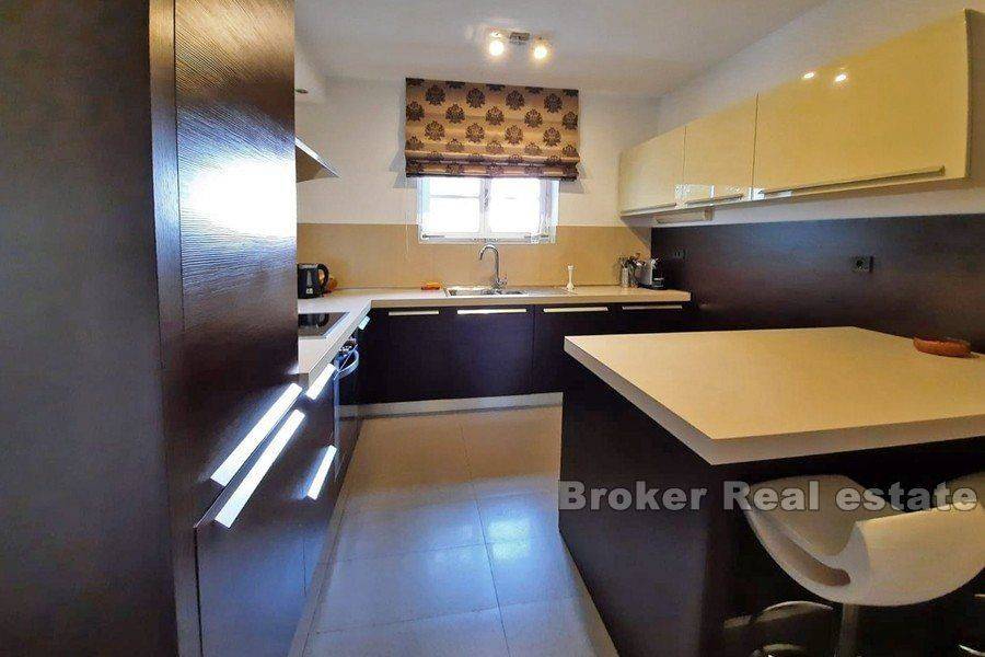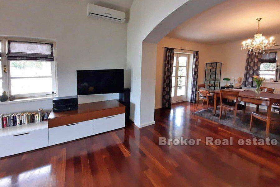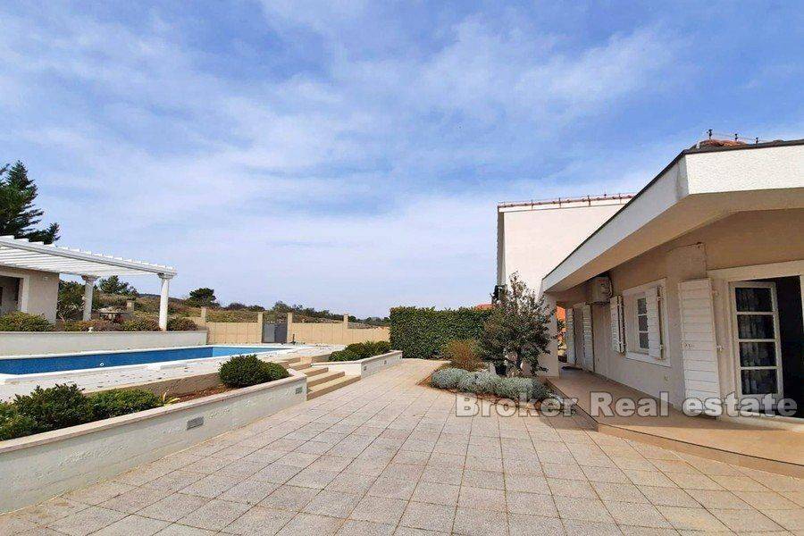For sale is a beautiful Mediterranean villa with pool and landscaped garden in an attractive location in a quiet environment. The villa spreads over two floors. The ground floor has a large living room, dining room, kitchen, 3 bedrooms and 3 bathrooms. Stairs lead down to the basement of the house where there is a large common room for socializing and can be converted into a room, bathroom and boiler room. On a plot of 1400m2, there is a swimming pool, a large, maintained garden with Mediterranean plants and an outdoor terrace with barbecue and dining area. Distance from the sea 1200m, away from the city noise, provides peace and enjoyment of living. The villa is promising for tourist rental and as such is ideal for investment.
