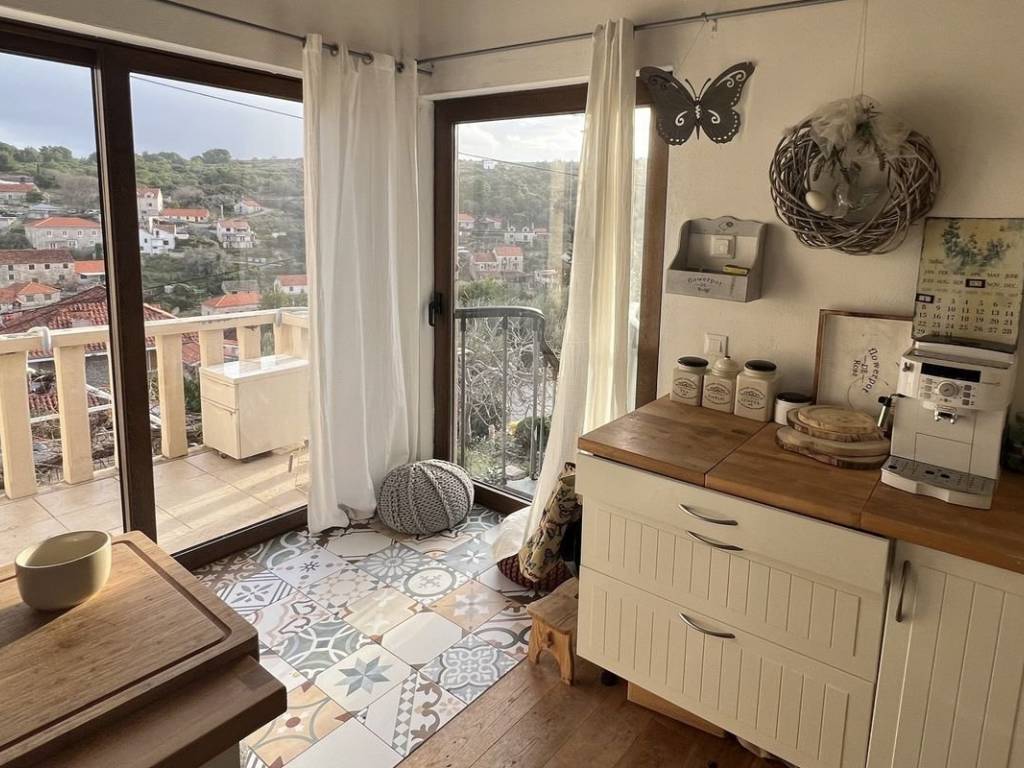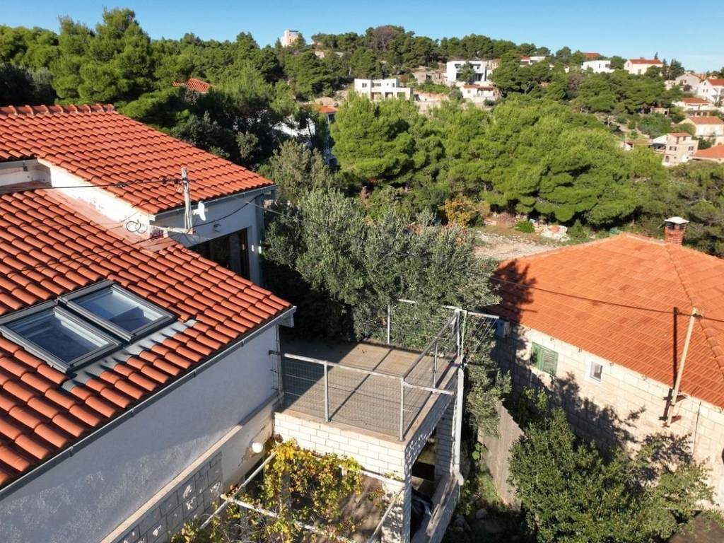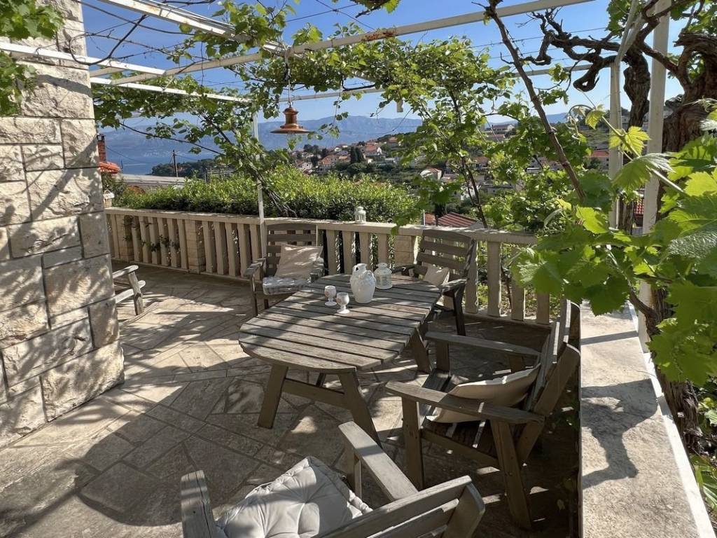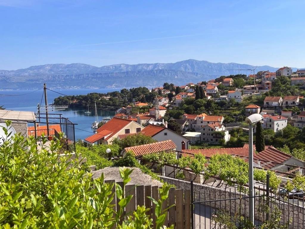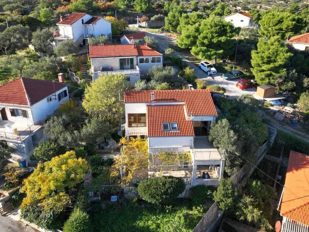 A beautiful house with a sea view is for sale, located in the quiet small town of Splitska on the island of Brač.   It is located on a plot of 410 m2, with a total living area of ​​190 m2. It extends over two floors and offers four residential units, each of which has its own entrance, ensuring privacy and convenience. Each floor has a beautiful terrace with a view of the sea. The beautifully landscaped yard features a summer kitchen with a fireplace, a rich garden with olive, fig and other fruit trees.   For additional comfort, parking spaces for several cars are provided.   The town of Splitska is located on the northern coast of the island of Brač, between Supetar and Postira. It is located just 7 km from Supetar, the main ferry port on the island, which allows for quick and easy connections to the mainland. This beautiful property is an excellent choice for anyone looking for a break from the hustle and bustle of everyday life.