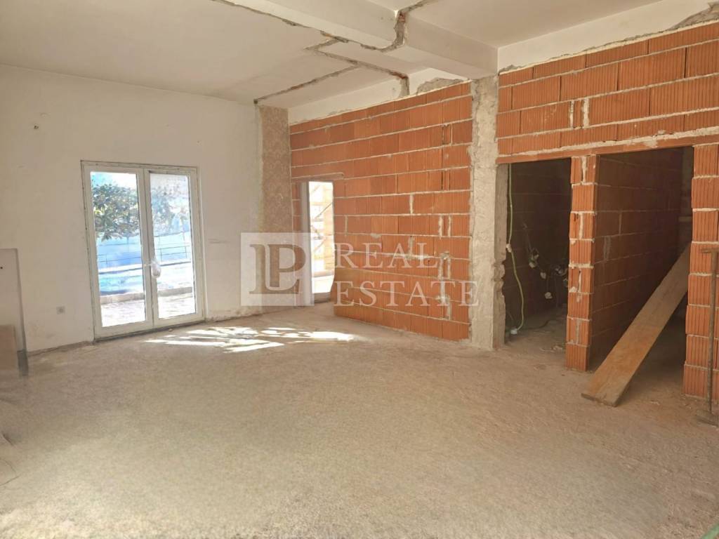 L'appartamento è attualmente in costruzione ed è composto da soggiorno, cucina, sala da pranzo, due camere da letto, bagno e balcone. Dal soggiorno e da una camera da letto si accede direttamente a un'ampia terrazza con vista parziale sul mare.