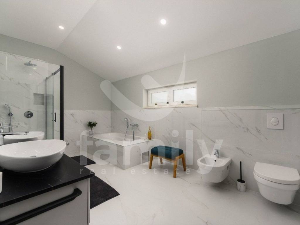 Canfanaro è un comune situato nella parte sud-occidentale della penisola, nella parte centrale dell'Istria, con un piccolo sbocco sul mare. È una destinazione interessante per gli amanti della natura, della tradizione e della cultura istriana, del patrimonio storico, ma anche per le vacanze attive, poiché la zona attorno a Canfanaro è adatta per escursioni a piedi e in bicicletta. Si tratta di un incrocio di strade statali, provinciali e locali, nonché dell'incrocio della Y istriana. Non lontano da Canfanaro, in un piccolo villaggio, si trova questa bella e spaziosa villa di nuova costruzione. Ha una superficie di 186 m2 e si sviluppa su una superficie territoriale di 700 m2.È stata progettata in stile istriano-italiano e, poiché i proprietari l'hanno costruita per sé, è stata prestata particolare attenzione alla qualità dei materiali, all'isolamento, alle fonti di energia rinnovabili, alle pompe di calore, alla carpenteria ed è stata costruita secondo i più elevati standard di costruzione e le normative dell'UE. La casa principale si estende su due piani, piano terra e primo piano. Al piano terra si trovano due camere da letto, ciascuna con il proprio bagno, una toilette, una cucina di alta qualità realizzata su misura con isola, un soggiorno e una sala da pranzo e un'ampia terrazza con una cucina estiva in pietra con barbecue, lavello, piano cottura a induzione, frigorifero e un tavolo per sei persone. Al primo piano si trova una camera da letto padronale con un ampio bagno e una terrazza, e dal primo piano si gode di una bellissima vista sul mare. Nel soggiorno è presente un camino da 25 kW, predisposto per il riscaldamento a pavimento e l'acqua sanitaria, e sono stati lasciati al loro posto tutti gli impianti, se necessario, per collegare il tutto all'impianto esistente. Oltre alla casa principale, la proprietà comprende anche un edificio residenziale più piccolo con ingresso indipendente, completamente attrezzato con sala da pranzo, cucina, zona notte, bagno e con una superficie di 25 m2. Il giardino comprende una piscina di 38 m2, una doccia solare, una zona solarium, una sala macchine con attrezzatura per la piscina e una centrale termica con apparecchiature per il riscaldamento della casa e l'acqua sanitaria. La casa è dotata di infissi in PVC a tre strati e di protezione "quattro stagioni" (4 STAGIONI, VETRO MULTIFUNZIONALE) che d'estate non lasciano entrare i raggi UV e d'inverno li lasciano entrare, il che contribuisce ulteriormente all'efficienza energetica e alla redditività di questa proprietà, mentre i pavimenti sono realizzati con ceramiche spagnole e italiane di alta qualità. Il riscaldamento a pavimento è ad acqua e, con l'ausilio di una pompa di calore, è possibile riscaldare durante tutto l'anno sia la casa che l'acqua sanitaria e la piscina, con un conseguente risparmio sui consumi energetici. Oltre al riscaldamento a pavimento, ogni camera è dotata di un proprio condizionatore inverter con termostato "Fujitsu". Attraverso un'applicazione mobile è possibile monitorare la temperatura nella proprietà e nella piscina, e questa proprietà è considerata una "casa intelligente", cioè: casa intelligente. Tutti i pavimenti della casa, così come i vialetti attorno alla casa e la zona prendisole attorno alla piscina, sono isolati con materiale impermeabilizzante. L'area verde viene irrigata tramite un sistema di irrigazione a goccia e un impianto di irrigazione a pioggia. Immobile ad alto rendimento energetico certificato con il massimo certificato energetico. Il tetto della casa è ventilato e consente un flusso d'aria costante, così la soffitta non viene riscaldata d'estate, e sopra il soffitto c'è un isolamento termico multistrato: 10 cm di lana di vetro, sopra i quali ci sono 10 cm di polistirolo e, infine, 5 cm di lana di roccia, per un totale di 25 cm di isolamento. È stato inoltre installato un isolamento termico di 10 cm della facciata. L'immobile è degno di nota per la sua posizione tranquilla, la qualità estremamente elevata, le attrezzature, l'elevata efficienza energetica, la splendida vista sul mare e offre al futuro acquirente l'opportunità di goderselo in termini di vita familiare lussuosa e di qualità o in termini di impegno in attività di affitto turistico e ritorno più rapido sull'investimento. PER TUTTE LE ALTRE INFORMAZIONI, CHIAMARE: