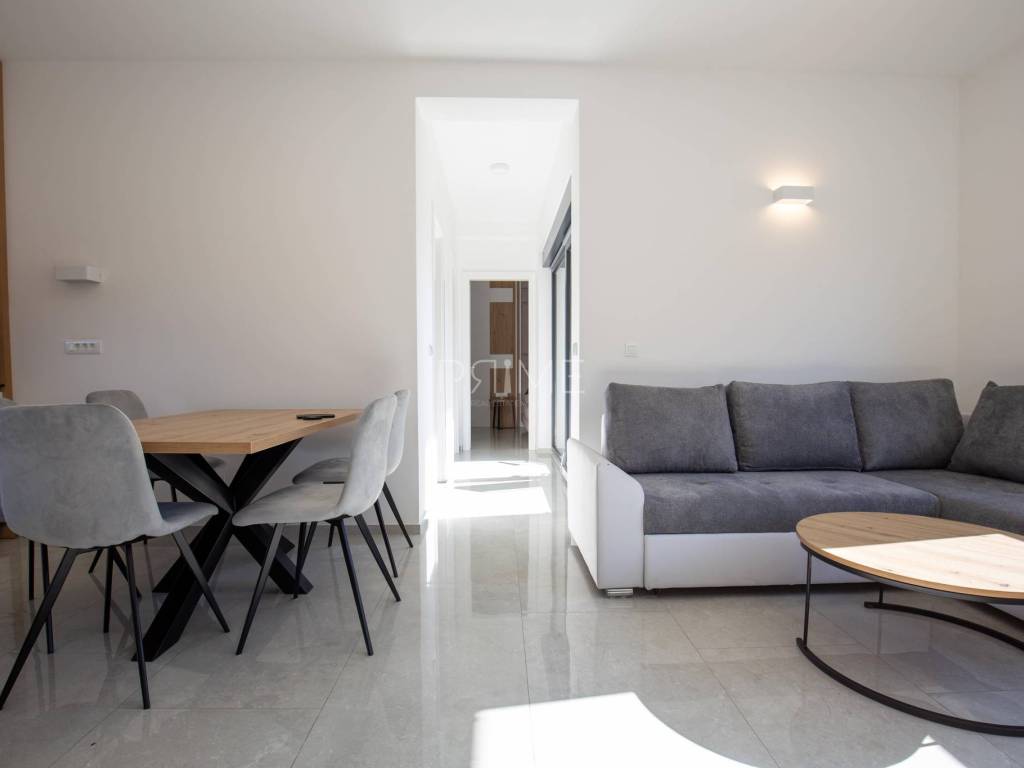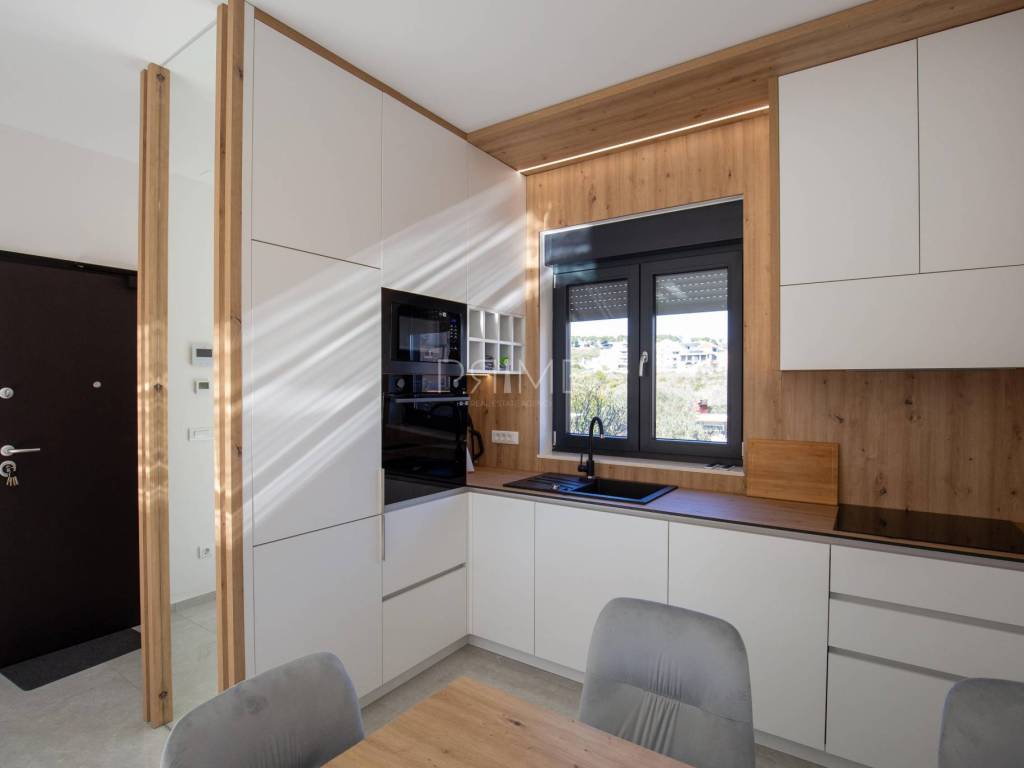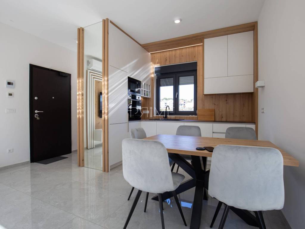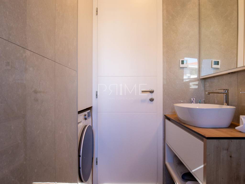 Stan površine 70,37 m2 ( tlocrtna površina stana s pripadcima 96,46 m2) sastoji se od kuhinje, blagovaone, dnevnog boravka, kupaone, dvije spavaće sobe i lođe. Pripadci stanu su spremište u podrumu zgrade i dva vanjska parkirna mjesta. Stan je luksuzno namješten i opremljen te se takav i prodaje ( kao na slikama, svi uređaji su pod garancijama). U izgradnji i opremanju su se koristili isključivo najkvalitetniji materijali od renomiranih proizvođača. Prodavatelj je pravna osoba što znači da je kupac oslobođen plaćanja poreza na promet nekretnina. Više  informacija na upit!