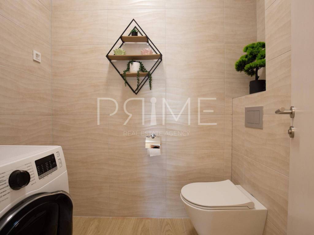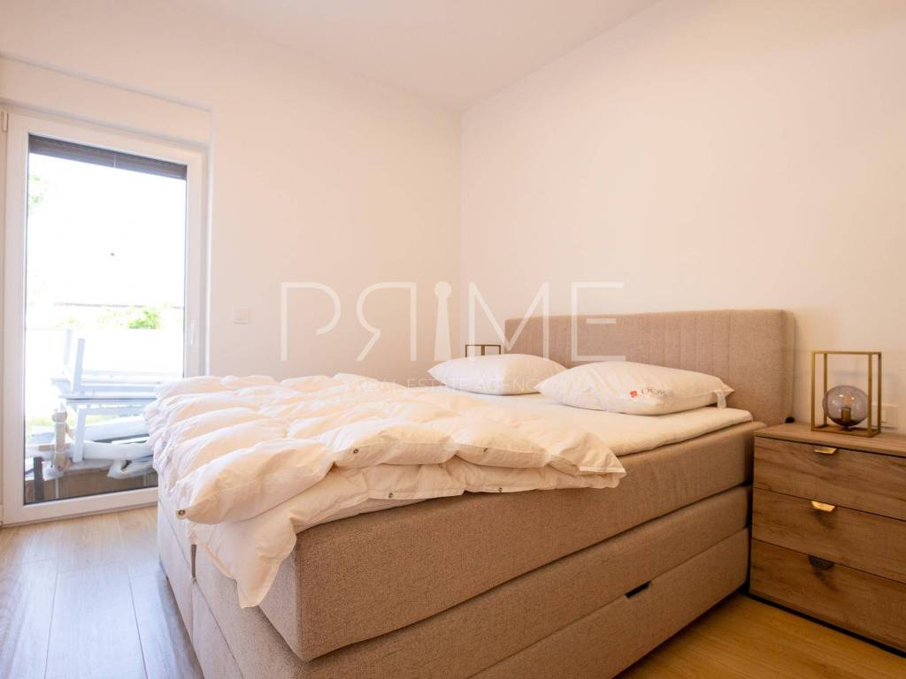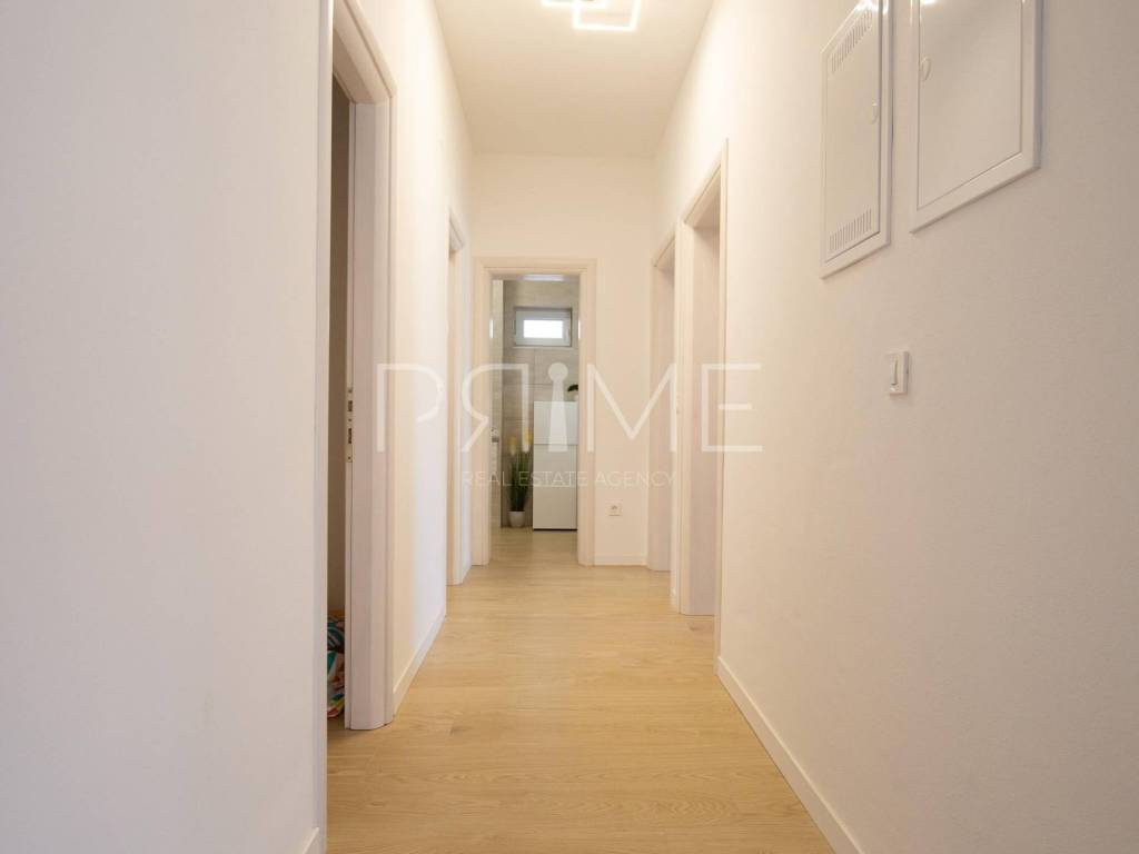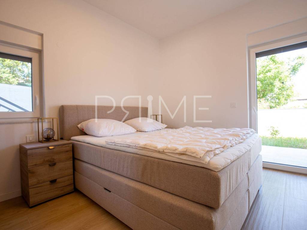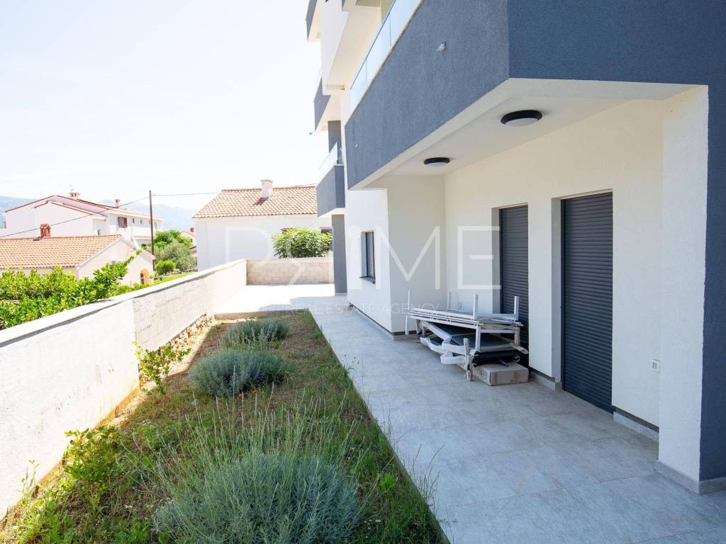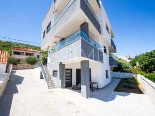 Stan površine 116 m2 sastoji se od od kuhinje, blagovaone, dnevnog boravka, dvije spavaće sobe, kupaonice, wc-a i dvije natkrivene terase. Pripadci stana su vrt i parking. Nalazi se na odličnoj lokaciji udaljenoj od mora i plaže 150 metara. Prodaje se kompletno namješten i opremljen. U izgradnji su korišteni pototherm block, 10 cm sitropor fasada, povc stolarija, električne rolete, komarnici, svaka prostorija je klimatizirana.... energetski certifikat A. S terase se pruža pogled na more i Velebit. Više informacija na upit!