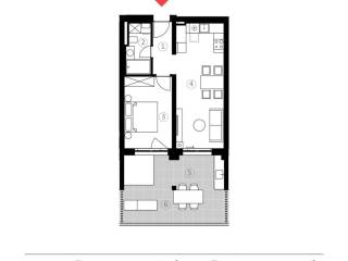 For sale is a modernly furnished apartment located in a high-quality building in Umag. The apartment is located on the 1st floor of a residential building equipped with an elevator, which consists of a total of 57 apartments.It has a net usable area of ​​42.57m2, with an additional terrace of 13.51m2.The apartment is designed to include an entrance hall, bathroom, bedroom, kitchen and living room. The living room provides access to a covered terrace. The price of the apartment also includes a summer kitchen on the terrace.Air conditioning is used for heating and cooling in all rooms, while the bathroom has electric underfloor heating.The apartments are equipped with a video intercom, aluminum windows, mosquito nets and electric shutters for additional comfort and security.The price of the apartment also includes a basement and a garage space.The planned completion of the construction of this residential complex is in June 2026.