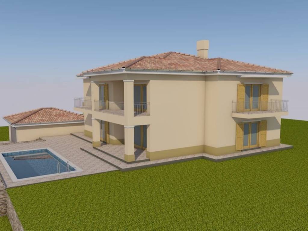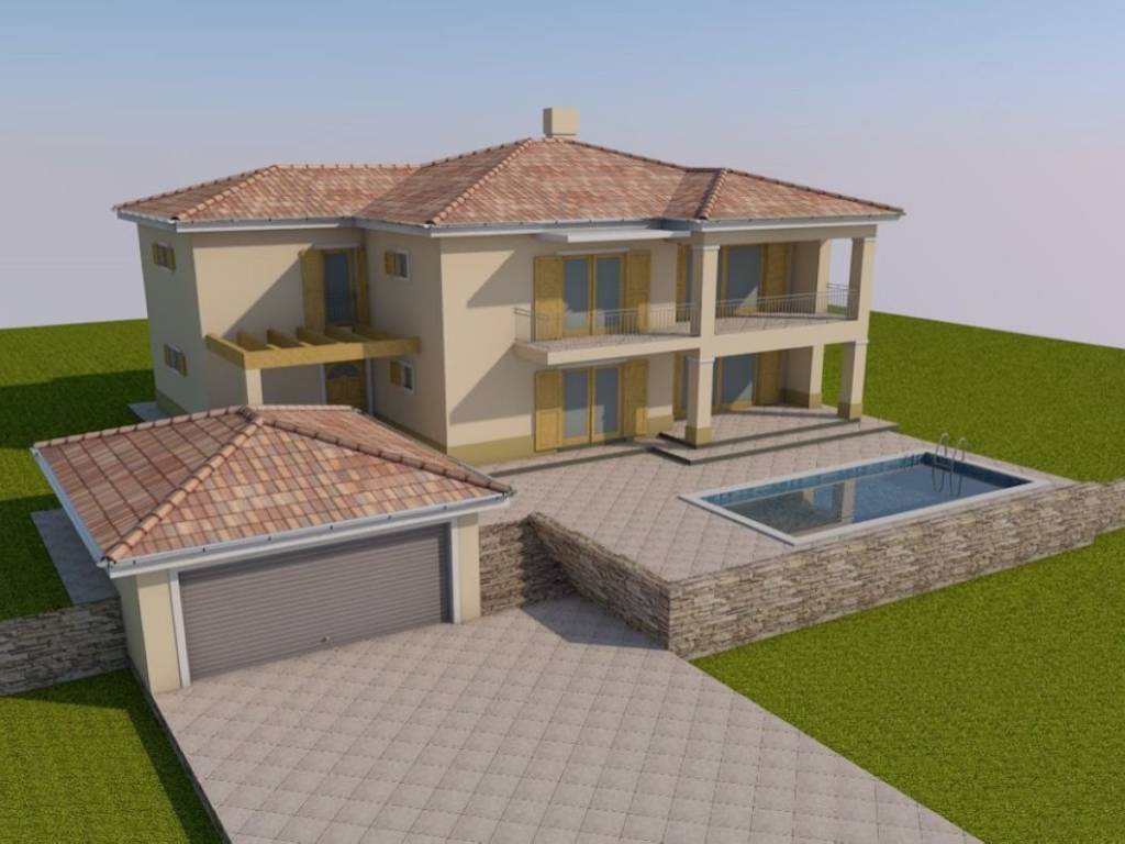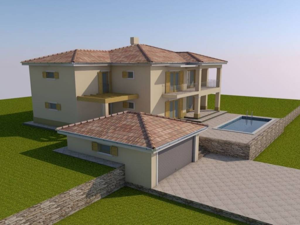 Otok Krk, Malinska, šire područje, prodaja građevinskog zemljišta površine 1144 m2, s postojećom kućom i dozvolom za rušenje te pravomoćnom dozvolom za izgradnju nove bruto površine 295 m2 s dvije stambene jedinice, garažom od 37 m2 i bazenom od 32 m2. Mirna lokacija, 2000 m od plaže i centra.
