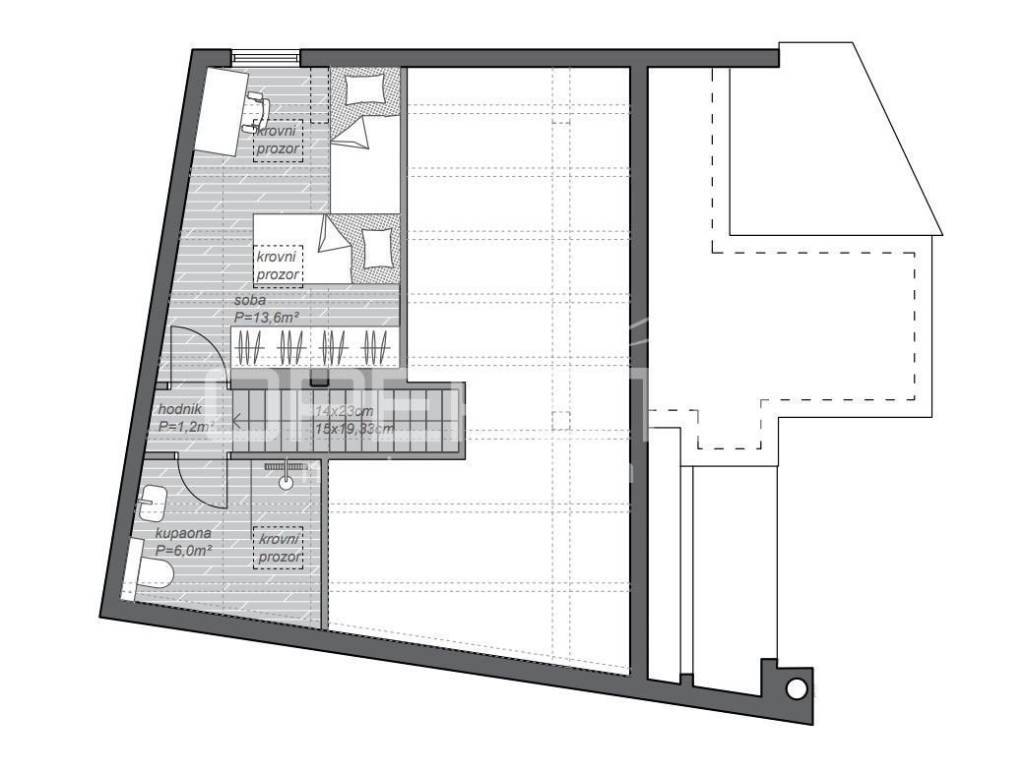 Tlocrt je iz idejnog projekta te je informativnog karaktera, moguća manja odstupanja prilikom završnog etažiranja.