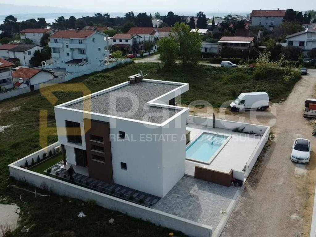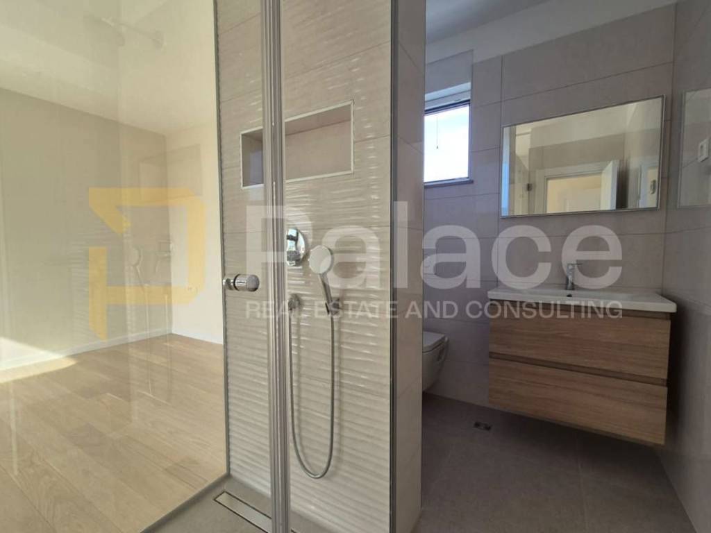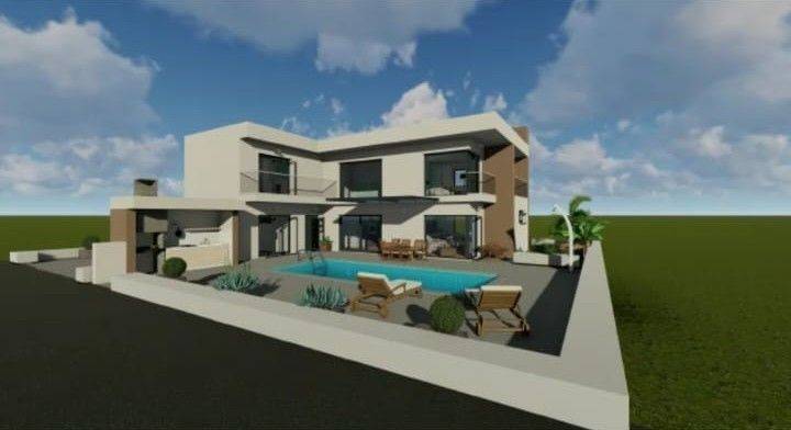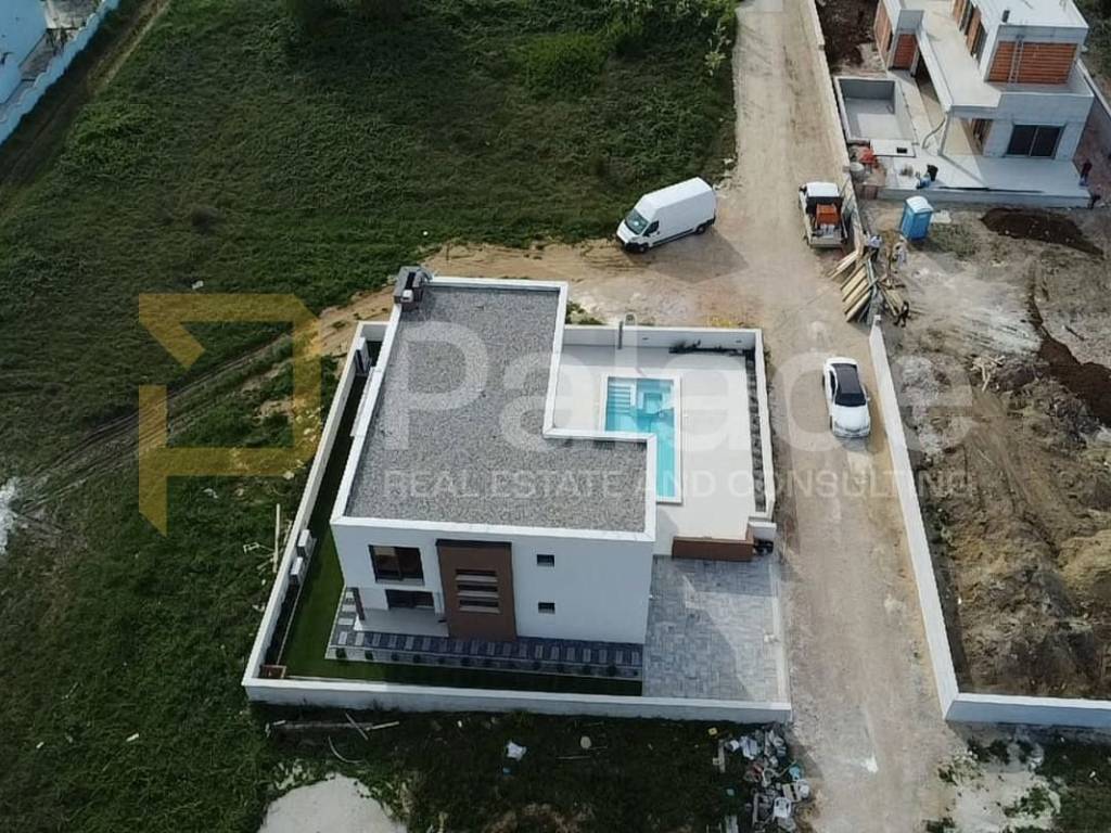 For sale is a modern property located on a 448 m2 plot, with a usable area of 188 m2. The villa consists of two floors, ground floor and first floor. The ground floor comprises a hallway, two rooms with attached covered terraces, a bathroom, spacious kitchen with dining area (46.70 m2) and access to the pool. The ground floor also includes a storage room with a separate entrance from the yard. The link between the ground floor and the first floor is a naturally lit internal staircase.